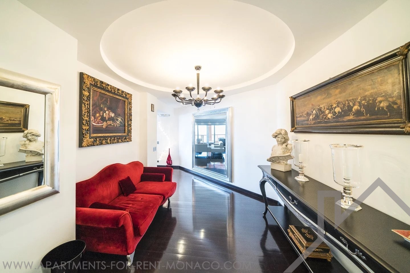 La Rousse, Saint Roman, dans une résidence de grand standing avec conciergerie 24/24 et piscine, très beau 5 pièces d'une surface habitable d'environ 228m² et de 48m² de terrasses. Situé au 15ème étage et exposé est, il bénéficie d'une vue mer panoramique dominant le Country Club et le Monte Carlo Beach. Il a été rénové avec de beaux matériaux et décoré de façon design. Proche commodités.