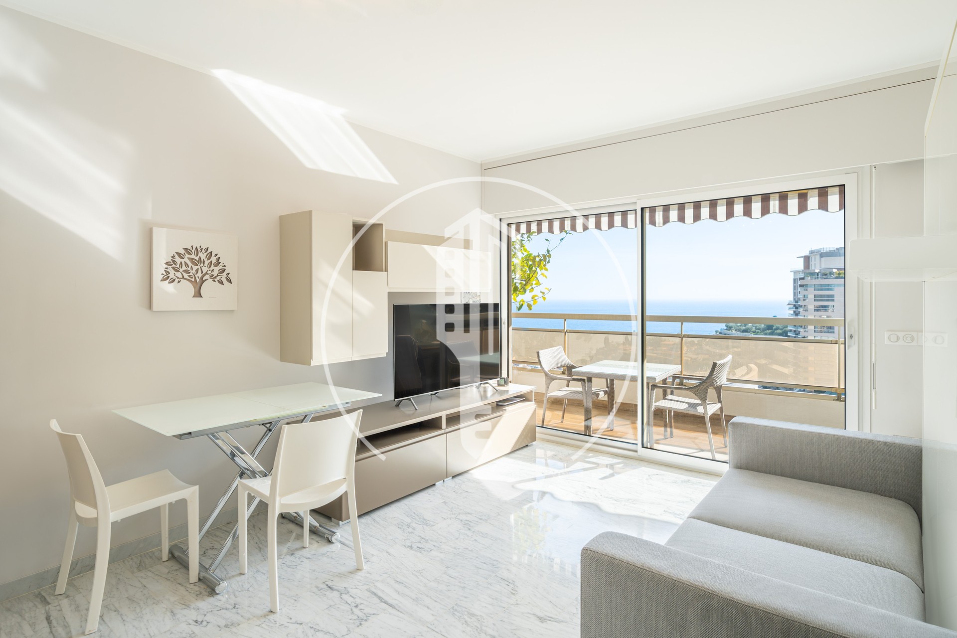 D'une surface habitable de 32 m² et de 10 m² de terrasse. Situé en étage élevé, ce joli studio a été entièrement rénové. Il est exposé plein sud et bénéficie d'une vue mer.