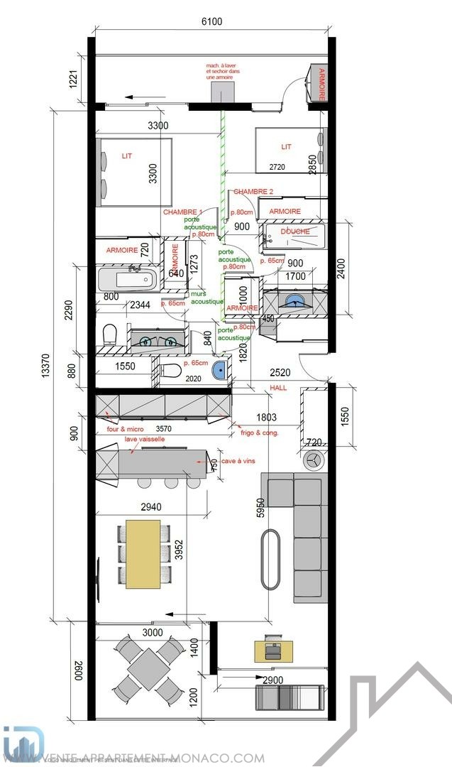 Il se compose d'un hall d'entrée avec placards, d'un séjour ouvrant sur une terrasse avec vue mer, d'une cuisine équipée ouverte sur le séjour avec vue mer, de deux chambres avec placards aménagés, d'une salle de bains complète, d'une salle de douche ainsi que d'un toilette invités.