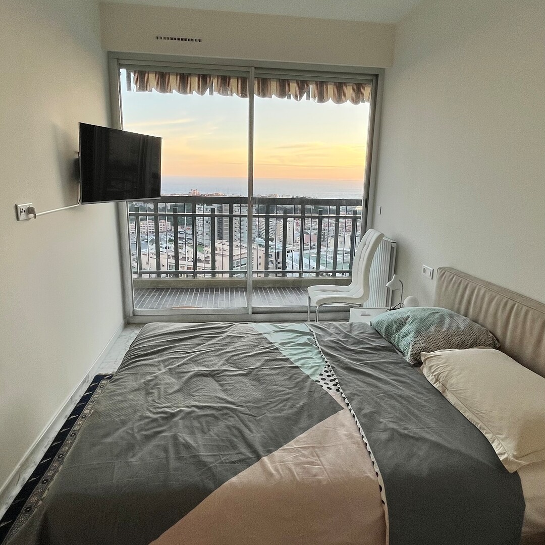 Cet appartement a une très belle exposition avec une superbe vue sur la mer et le Rocher, situé en étage élevée.
