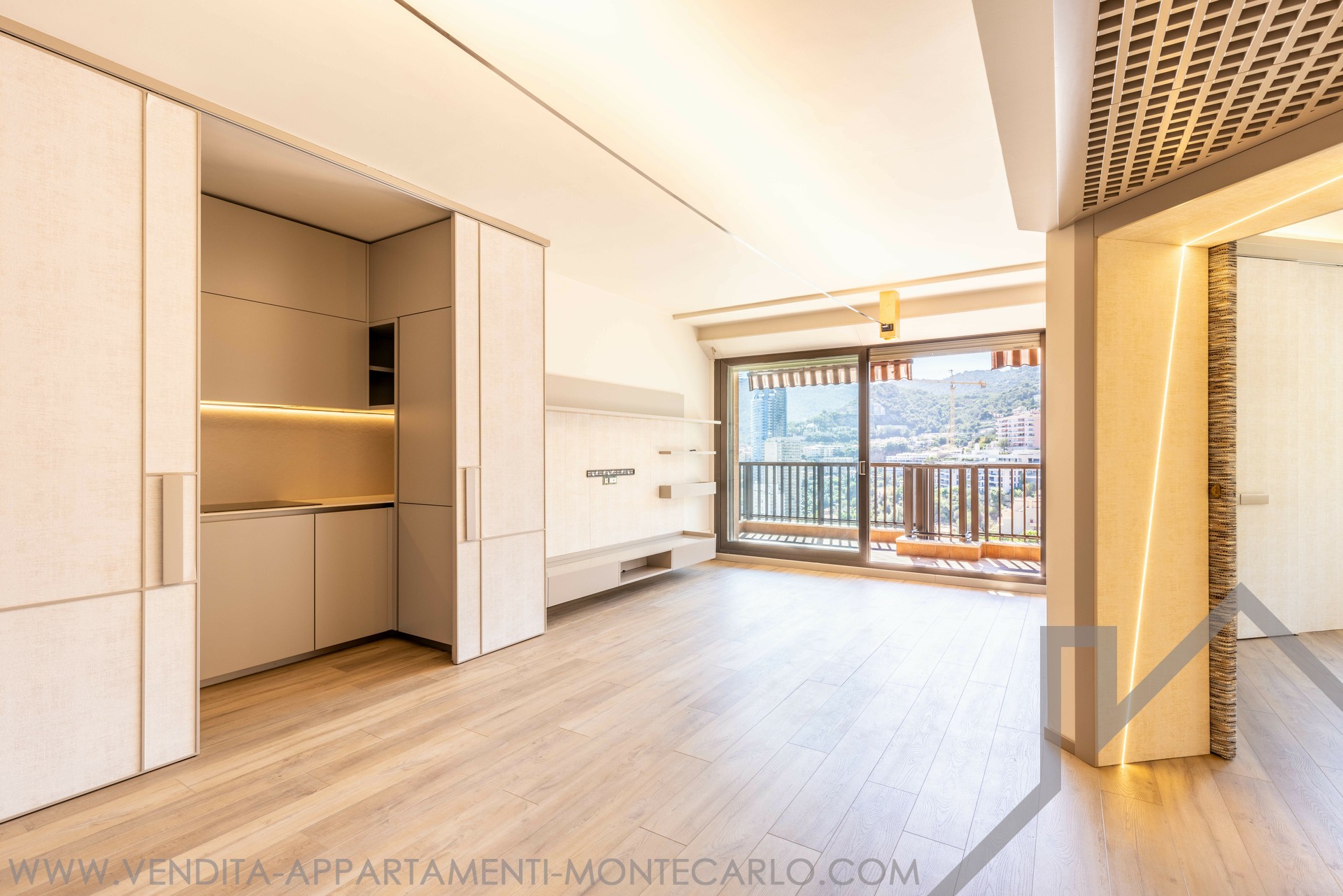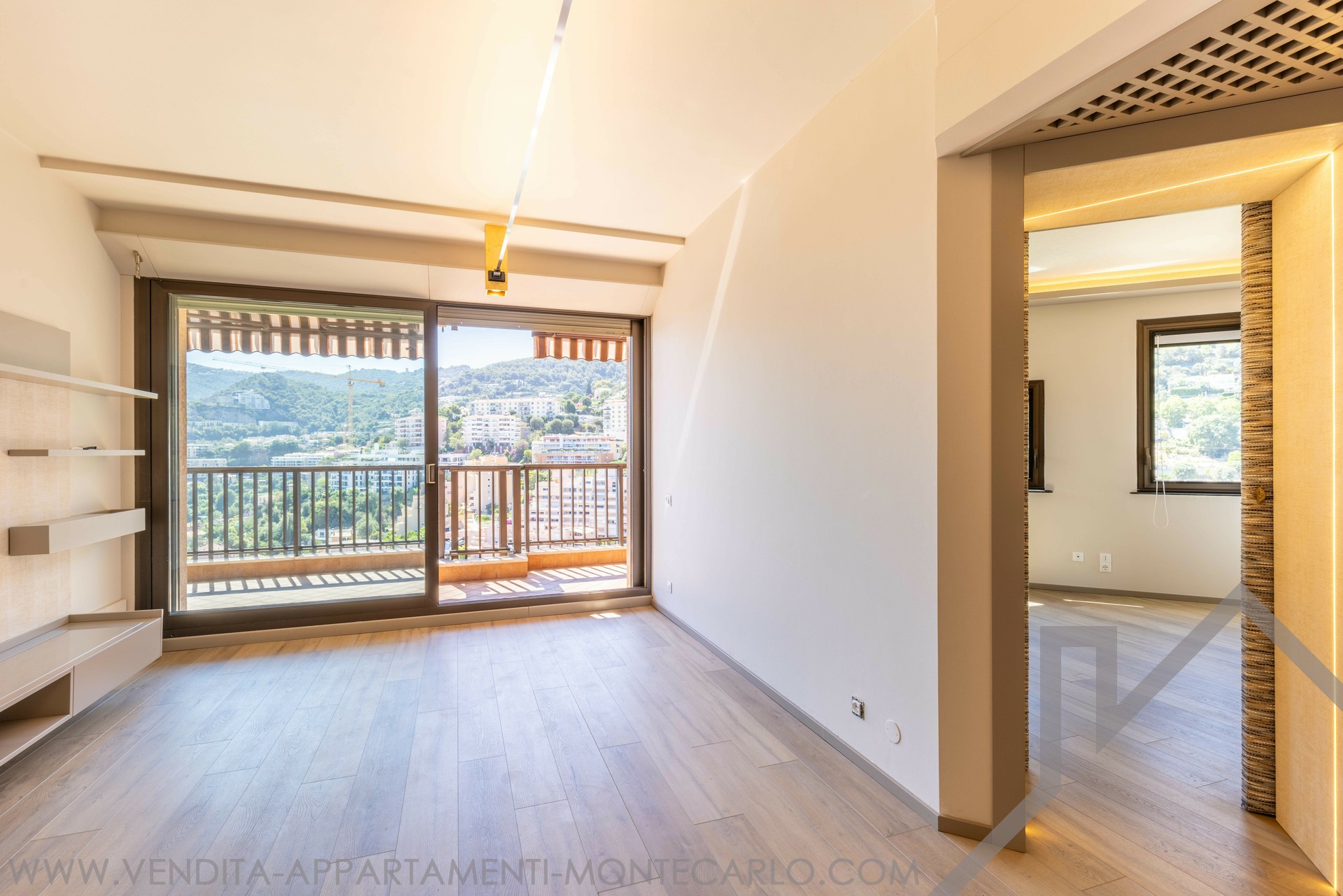 Spacieux deux pièces avec une magnifique vue mer et montagne. Situé dans un immeuble de grand standing entouré d’espaces verts avec de nombreux services : concierge 24h/24 7j/7, salle de fitness / spa, petite restauration ainsi que la plus prestigieuse piscine de la Principauté.