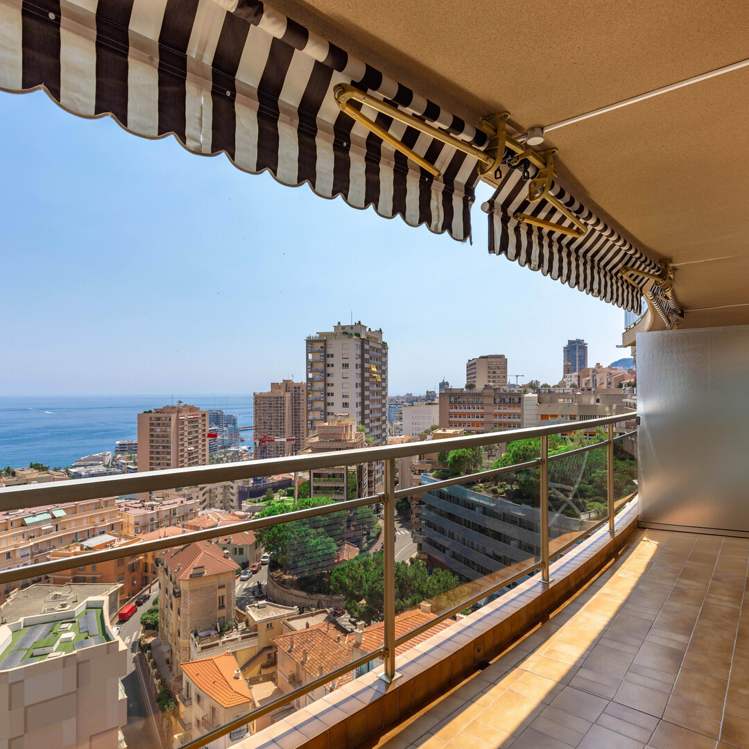 Belle terrasse avec vue mer panoramique.