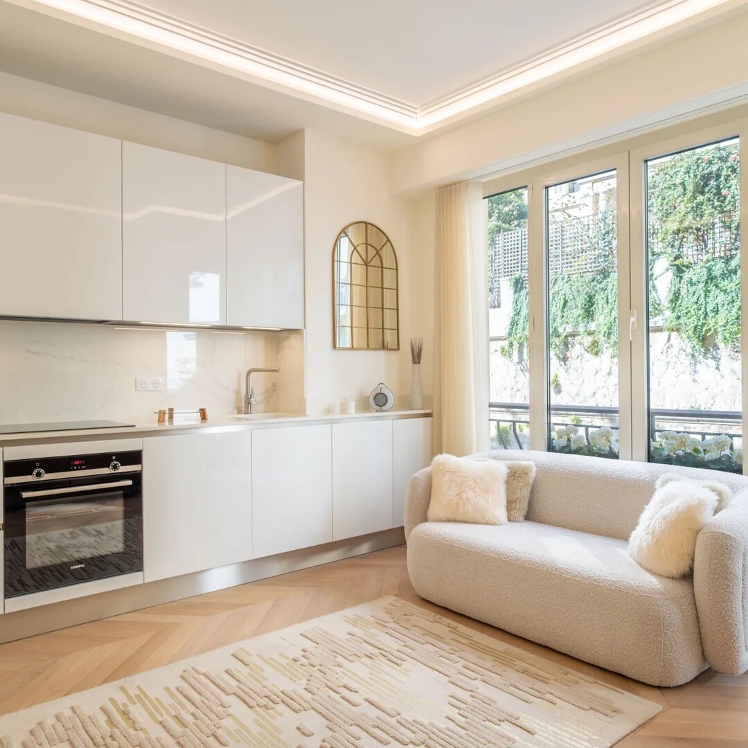 Ce 2 pièces en usage mixte d'une surface habitable de 48 m² et de 5 m² de balcons est entièrement rénové avec des finitions de qualité et meublé avec goût.