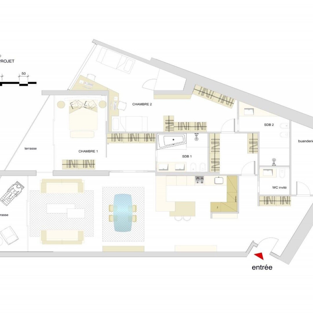 L'appartement peut être restructuré selon l'avant-projet proposé. Une cave et un parking.