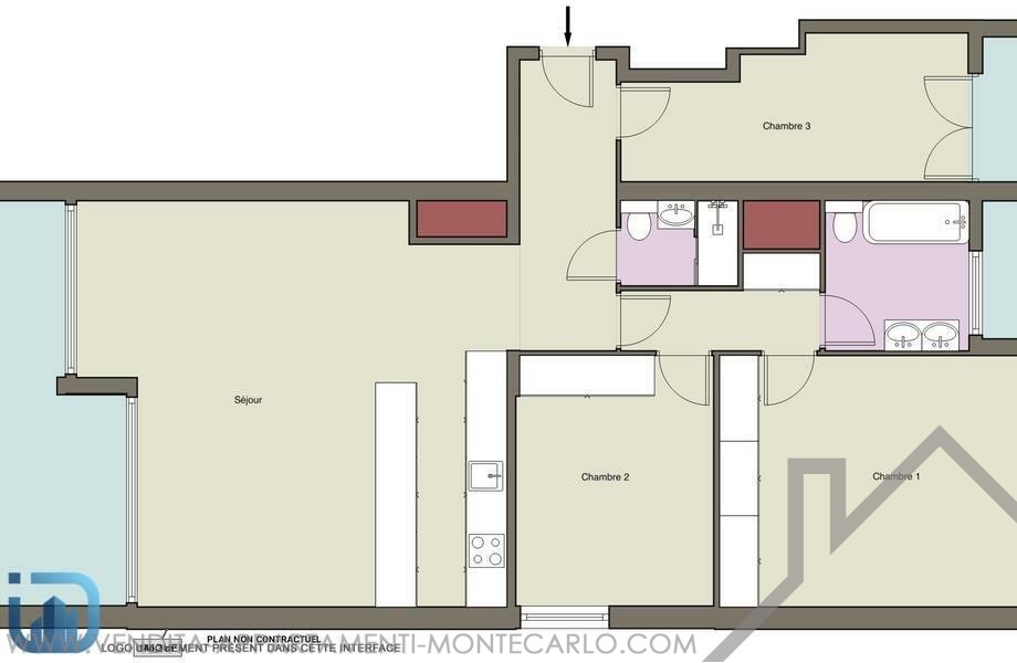 Il se compose d'un hall d'entrée, séjour salle à manger bénéficiant d'un accès direct à la terrasse avec une jolie vue mer, d'une cuisine équipée ouverte sur le séjour, de trois chambres dont une spacieuse avec beaucoup de rangements vue montagnes, salle de bains complète, salle de douche complète.
