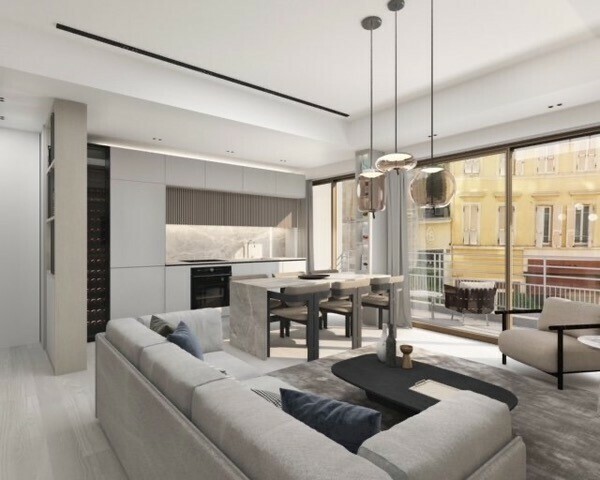 L'appartement est lumineux, entièrement rénové avec des matériaux haut de gamme et un soin particulier des finitions; il se compose d’un hall d’entrée, d’un salon avec une cuisine ouverte, terrasse, deux chambres et deux salles de bain.