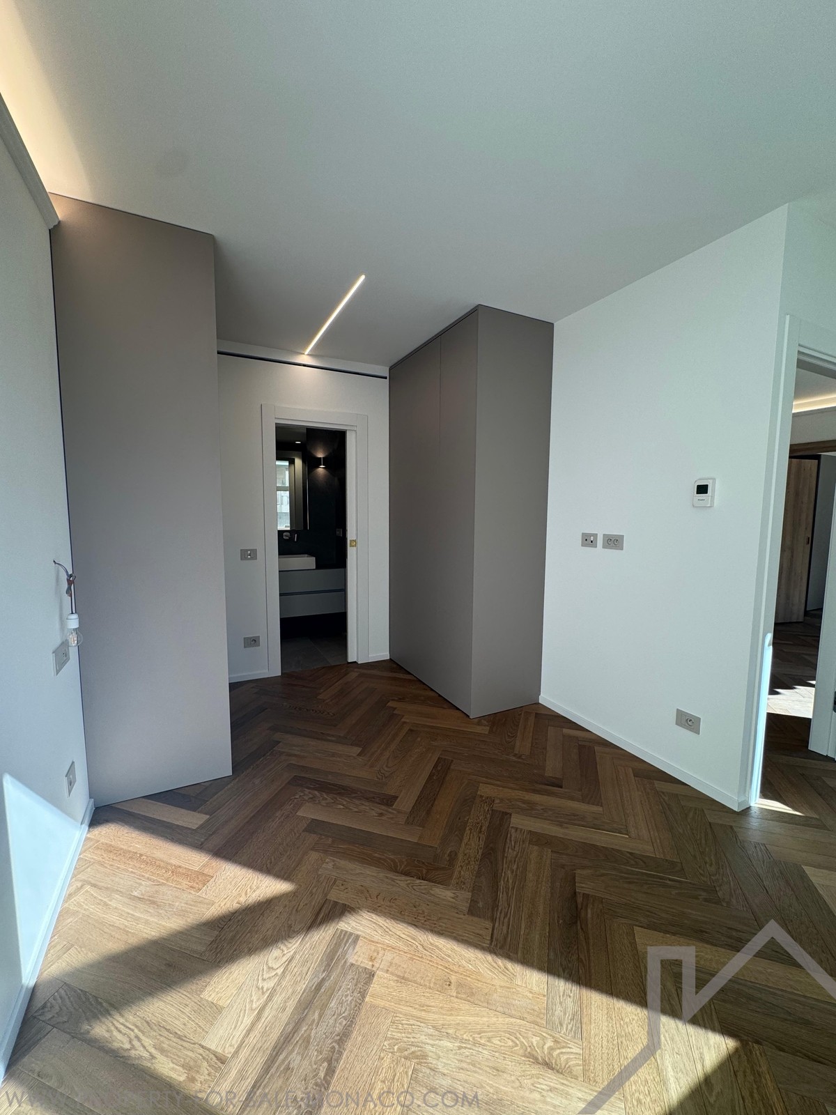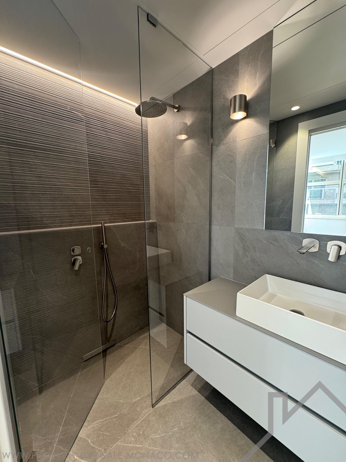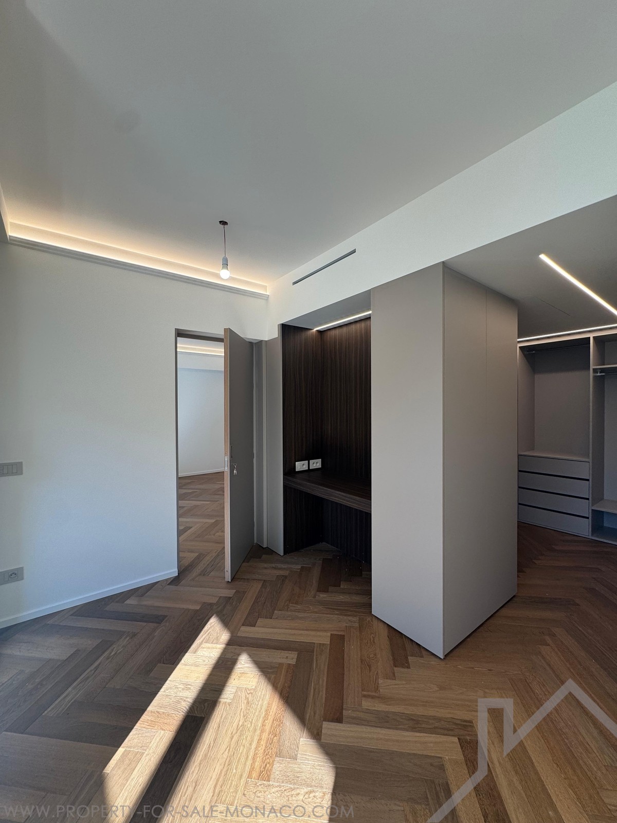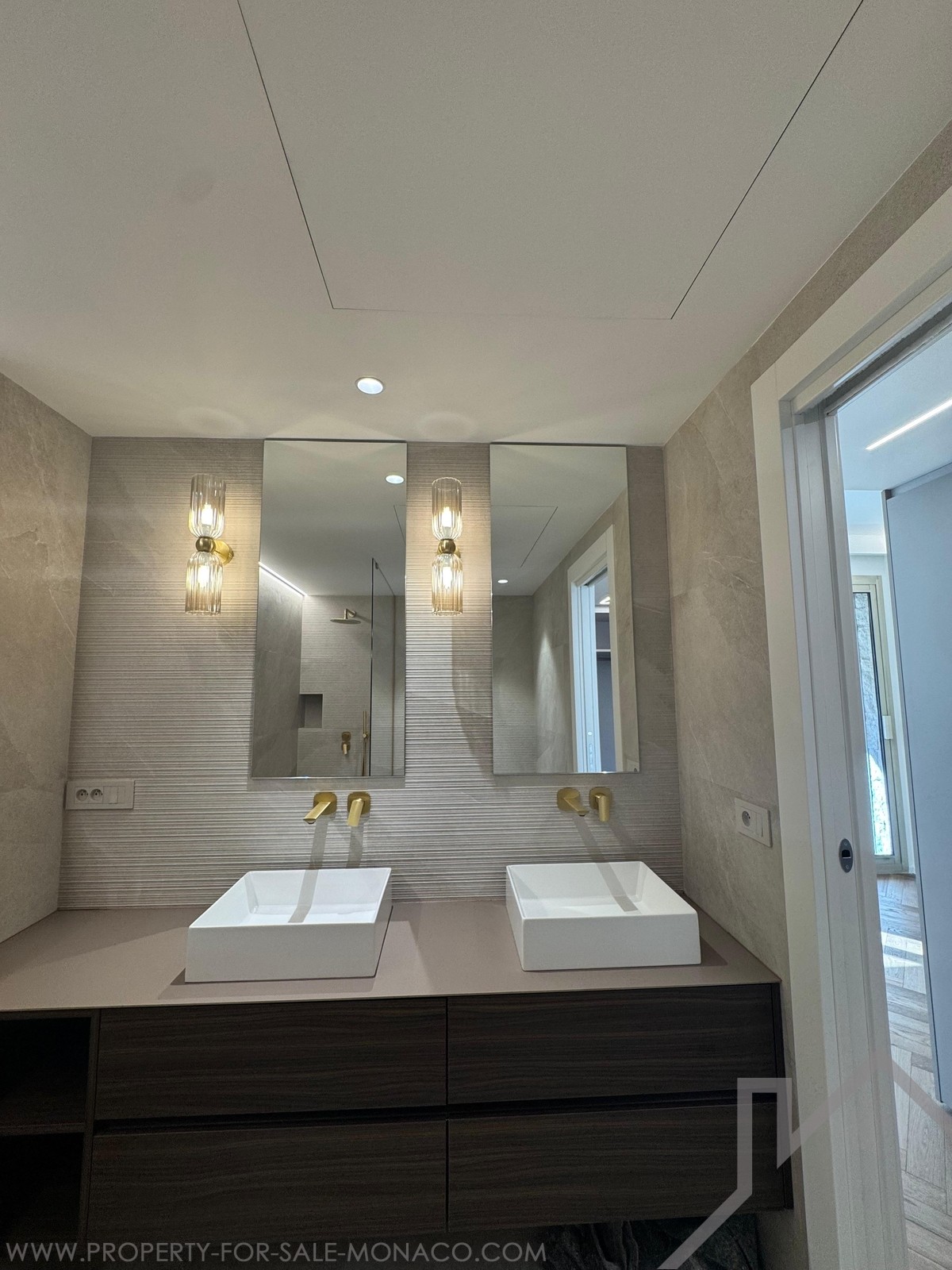 Composition : un hall d’entrée accueillant, un spacieux séjour parfait pour recevoir ou se détendre, une cuisine indépendante moderne, entièrement équipée, avec buanderie attenante, deux chambres en suite, chacune avec rangements intégrés et dressing, un toilette invités, un agréable balcon avec vue dégagée sur la ville, idéal pour profiter de l’ambiance monégasque.