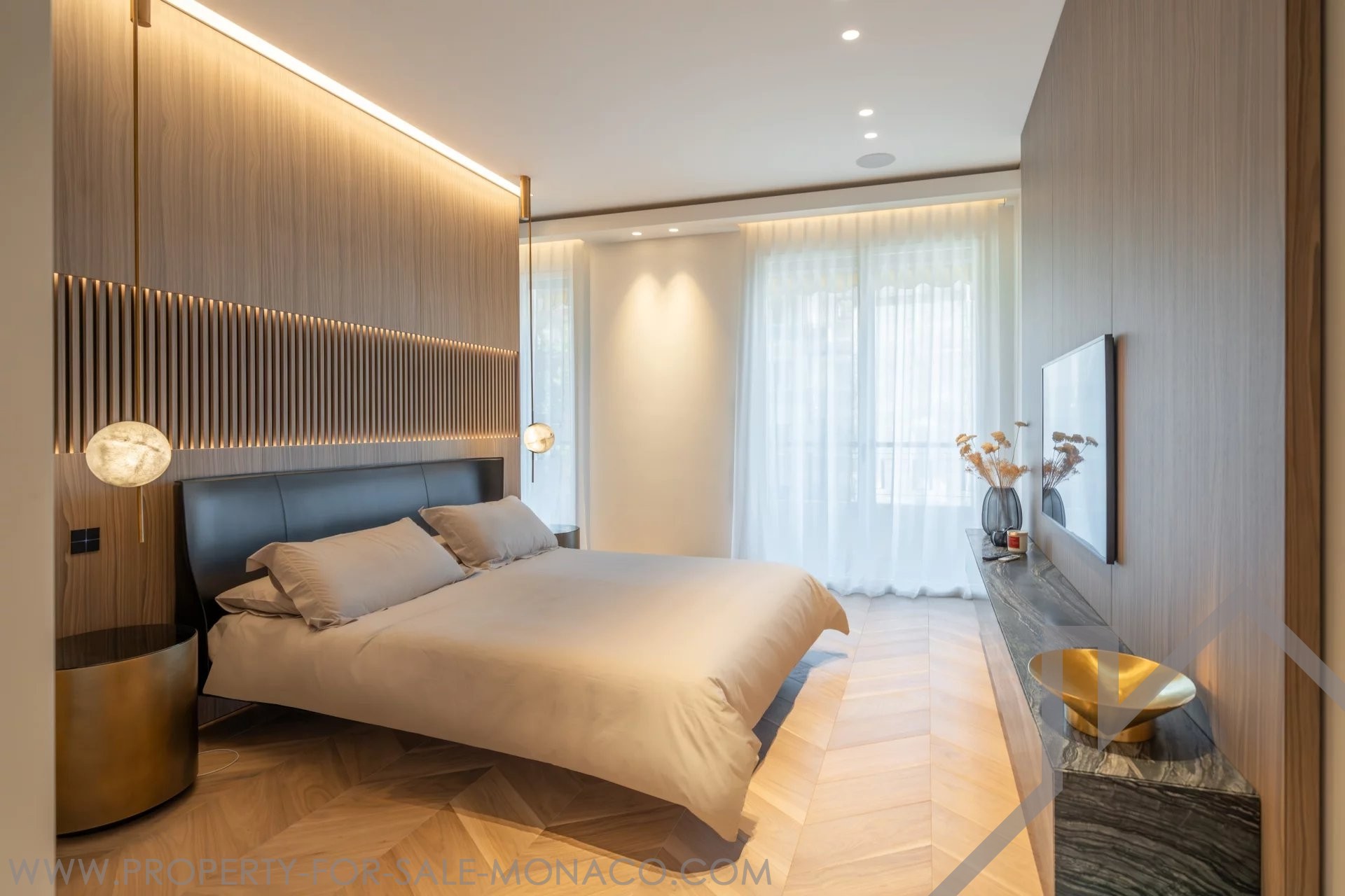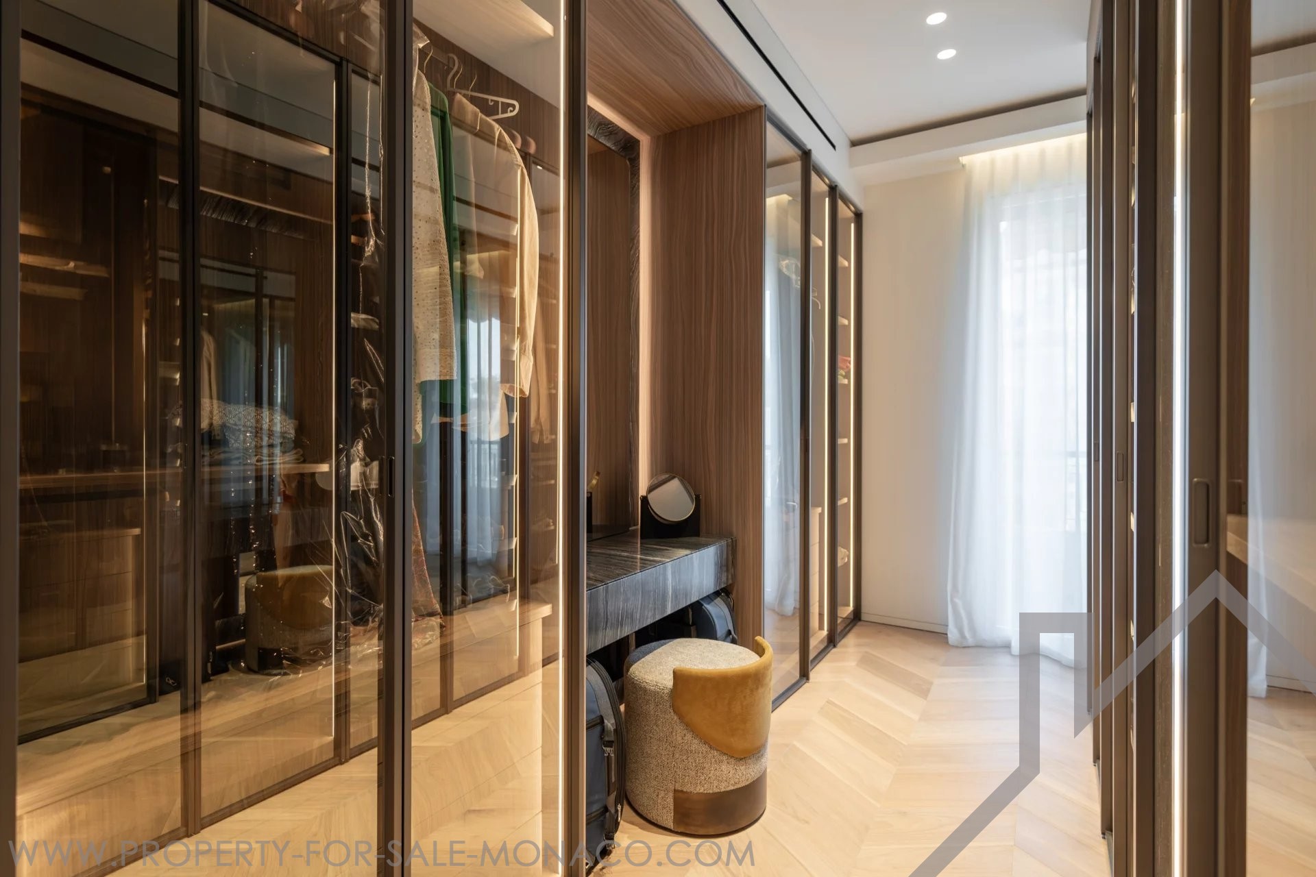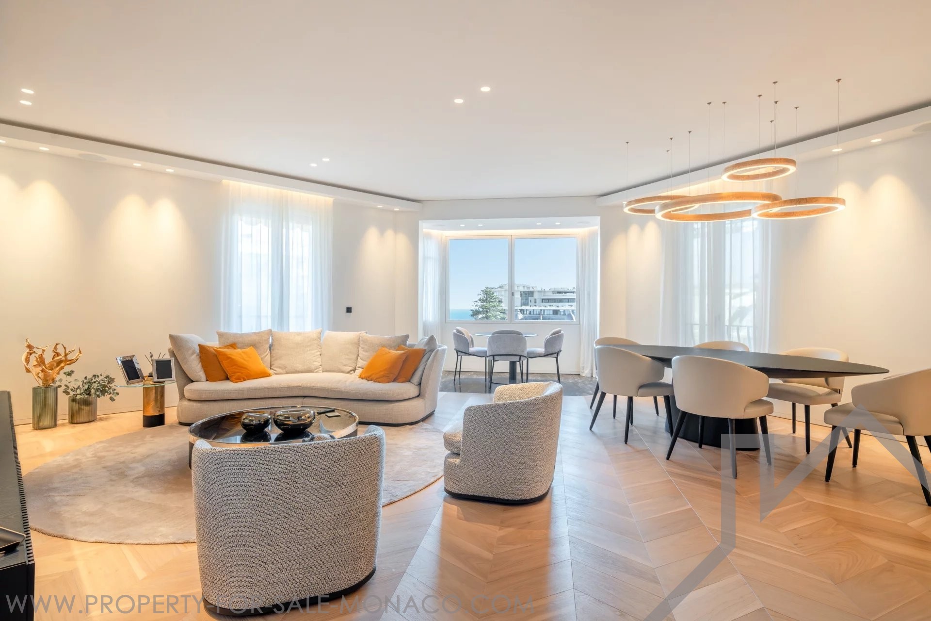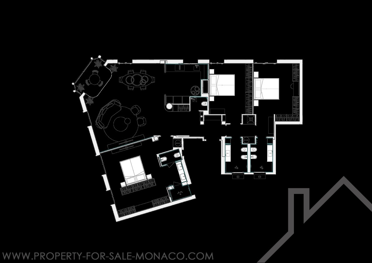 Il se compose de : un hall d'entrée, un lumineux séjour ouvrant sur un balcon avec une agréable vue sur le Casino et ses jardins, une cuisine semi ouverte et équipée, une chambre de maître avec un large dressing ainsi qu'une salle de douche complète, deux chambres avec chacune son dressing et sa salle de douche, un toilette invités.