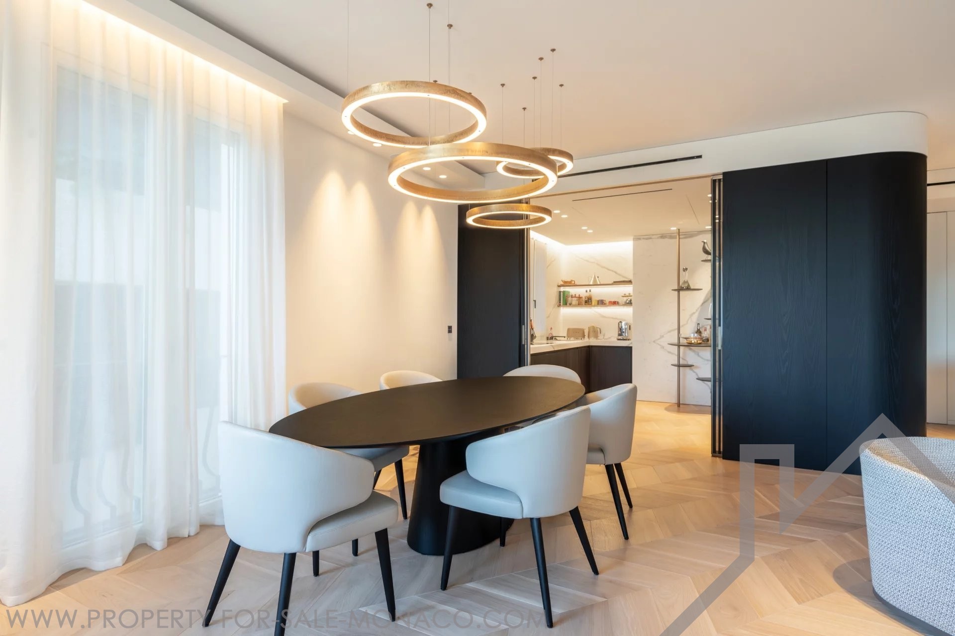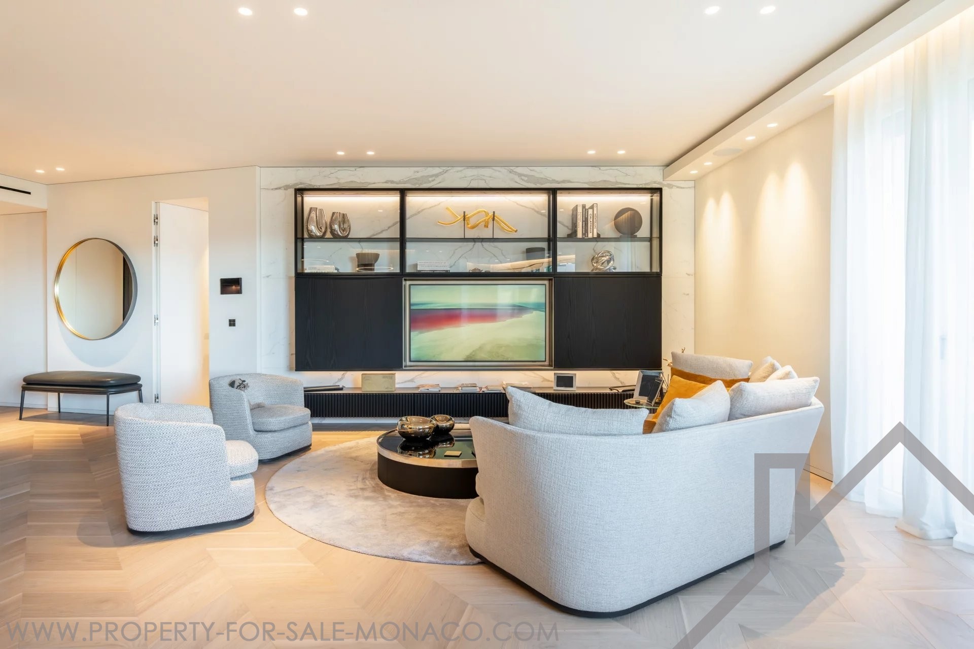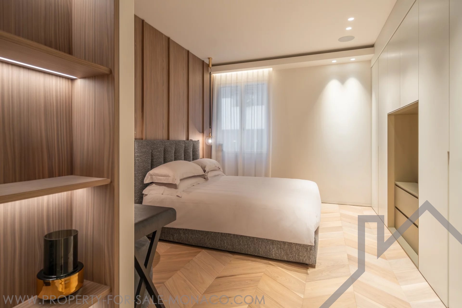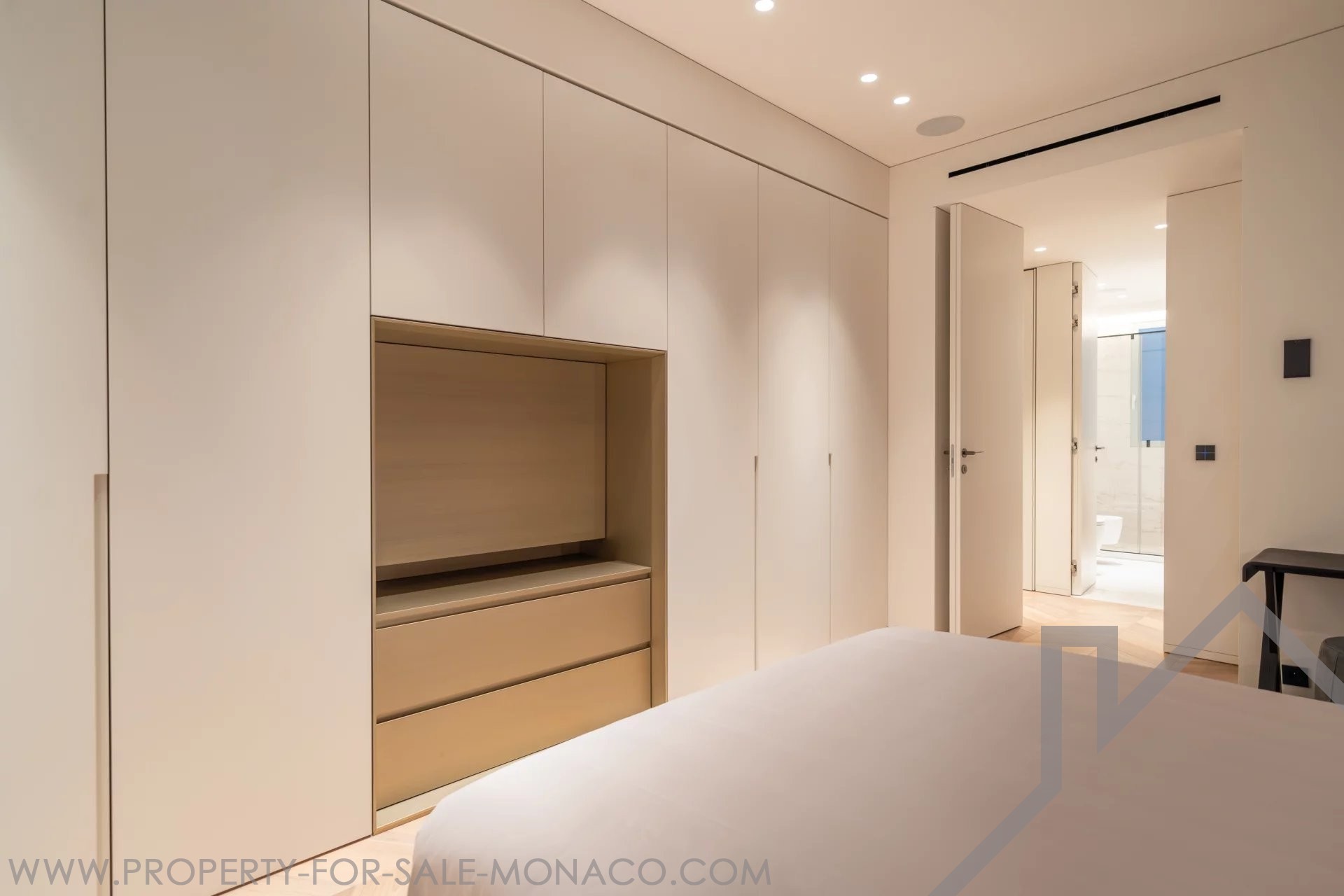 Il se compose de : un hall d'entrée, un lumineux séjour ouvrant sur un balcon avec une agréable vue sur le Casino et ses jardins, une cuisine semi ouverte et équipée, une chambre de maître avec un large dressing ainsi qu'une salle de douche complète, deux chambres avec chacune son dressing et sa salle de douche, un toilette invités.