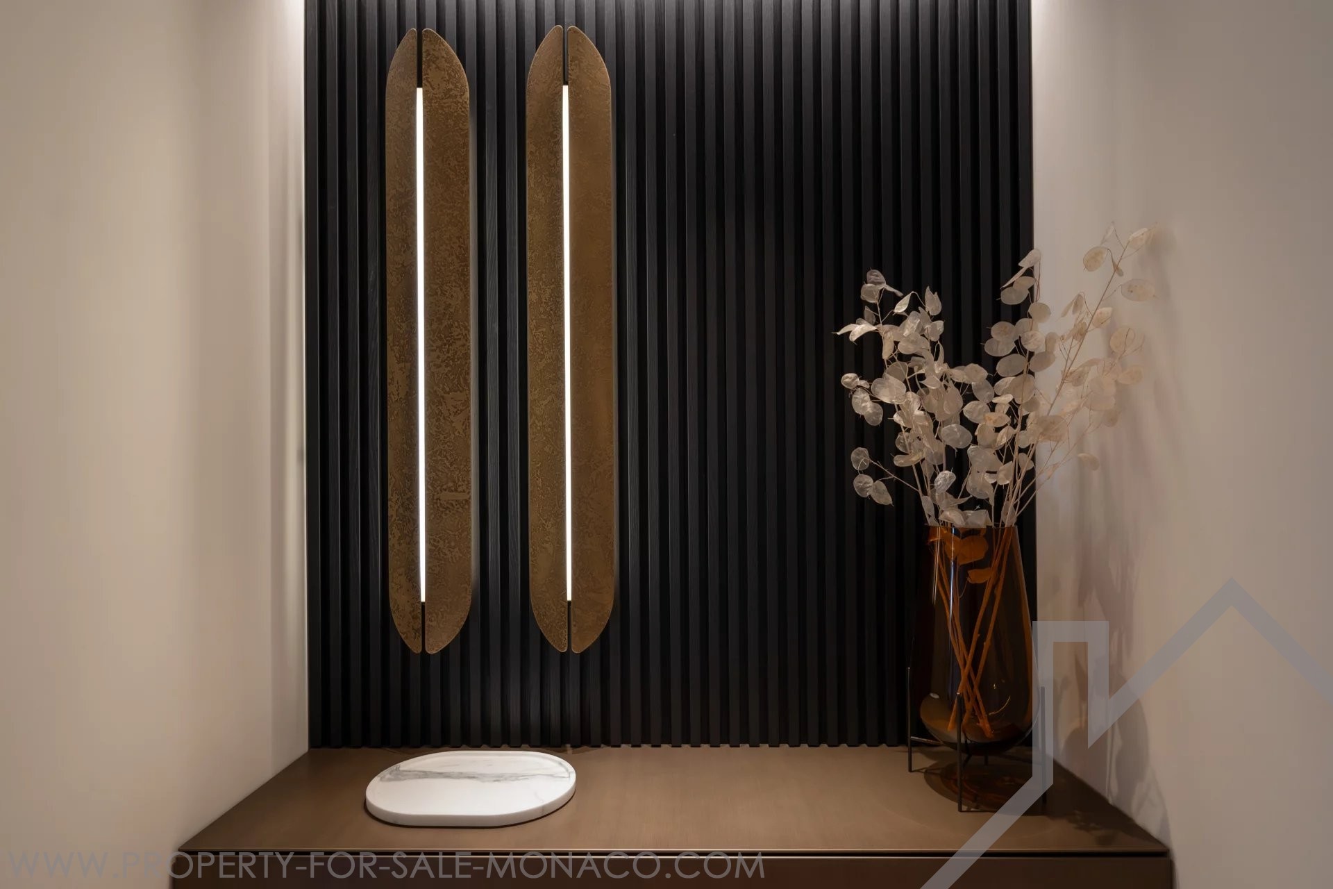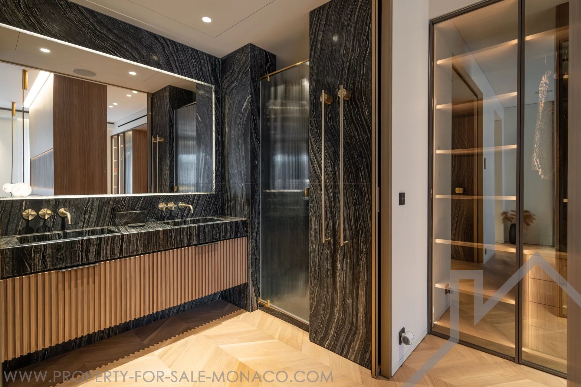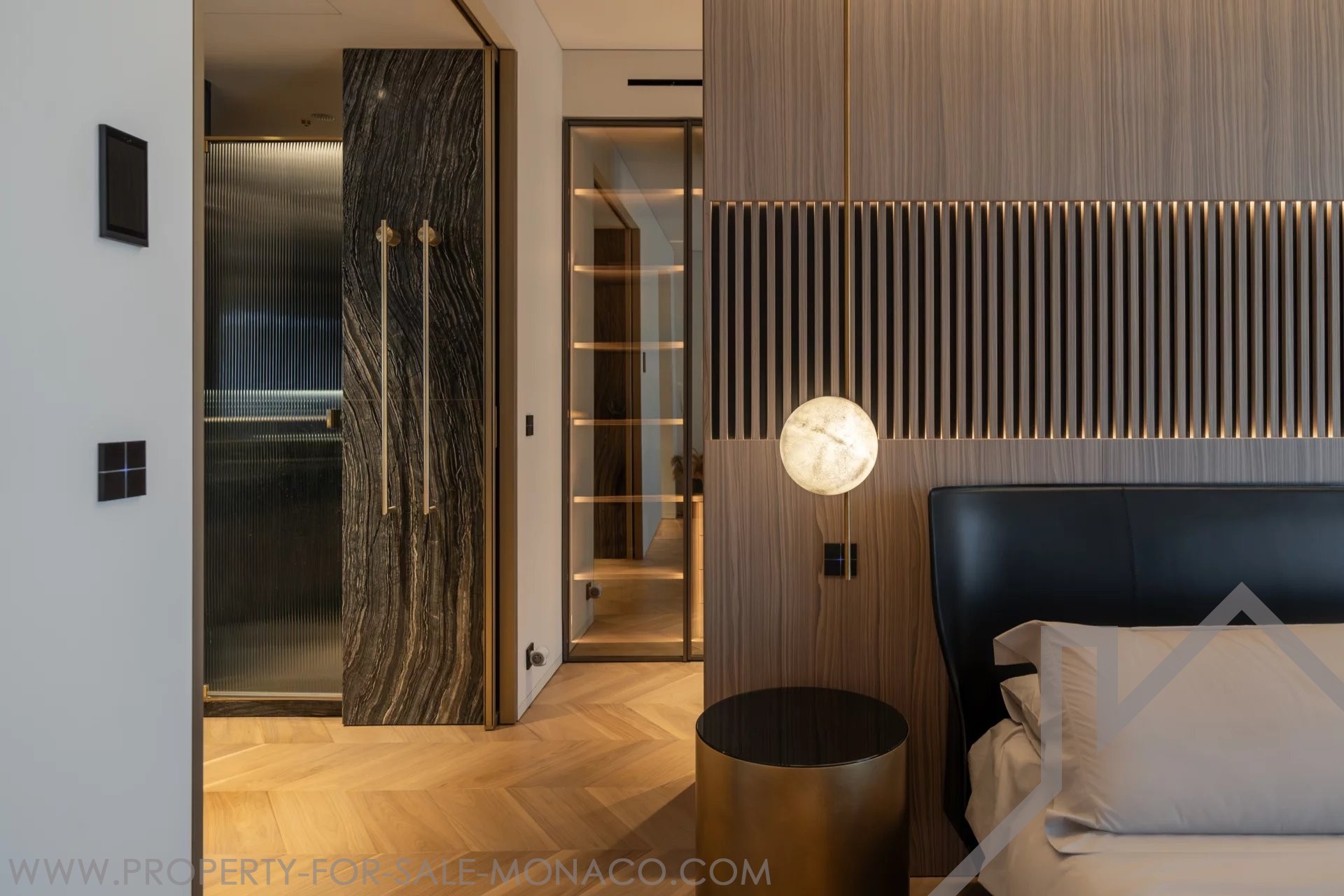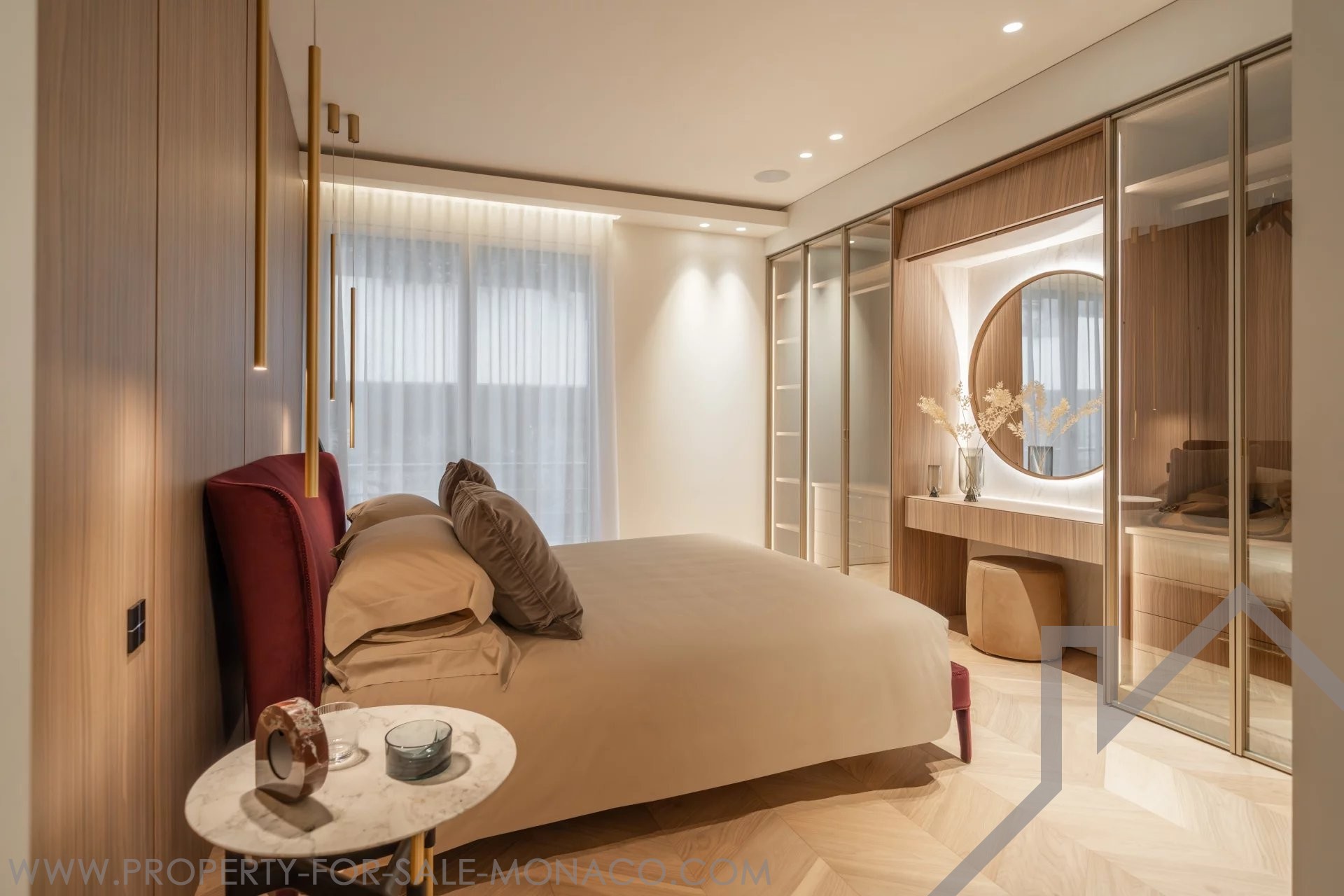 Il se compose de : un hall d'entrée, un lumineux séjour ouvrant sur un balcon avec une agréable vue sur le Casino et ses jardins, une cuisine semi ouverte et équipée, une chambre de maître avec un large dressing ainsi qu'une salle de douche complète, deux chambres avec chacune son dressing et sa salle de douche, un toilette invités.