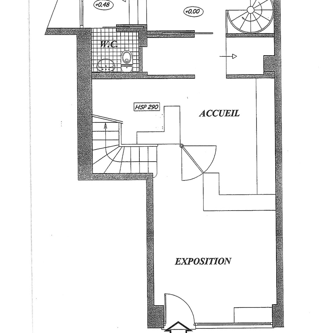 - Rez-de-chaussée : Surface d’environ 50 m² donnant sur la rue avec une large vitrine, offrant une excellente visibilité.