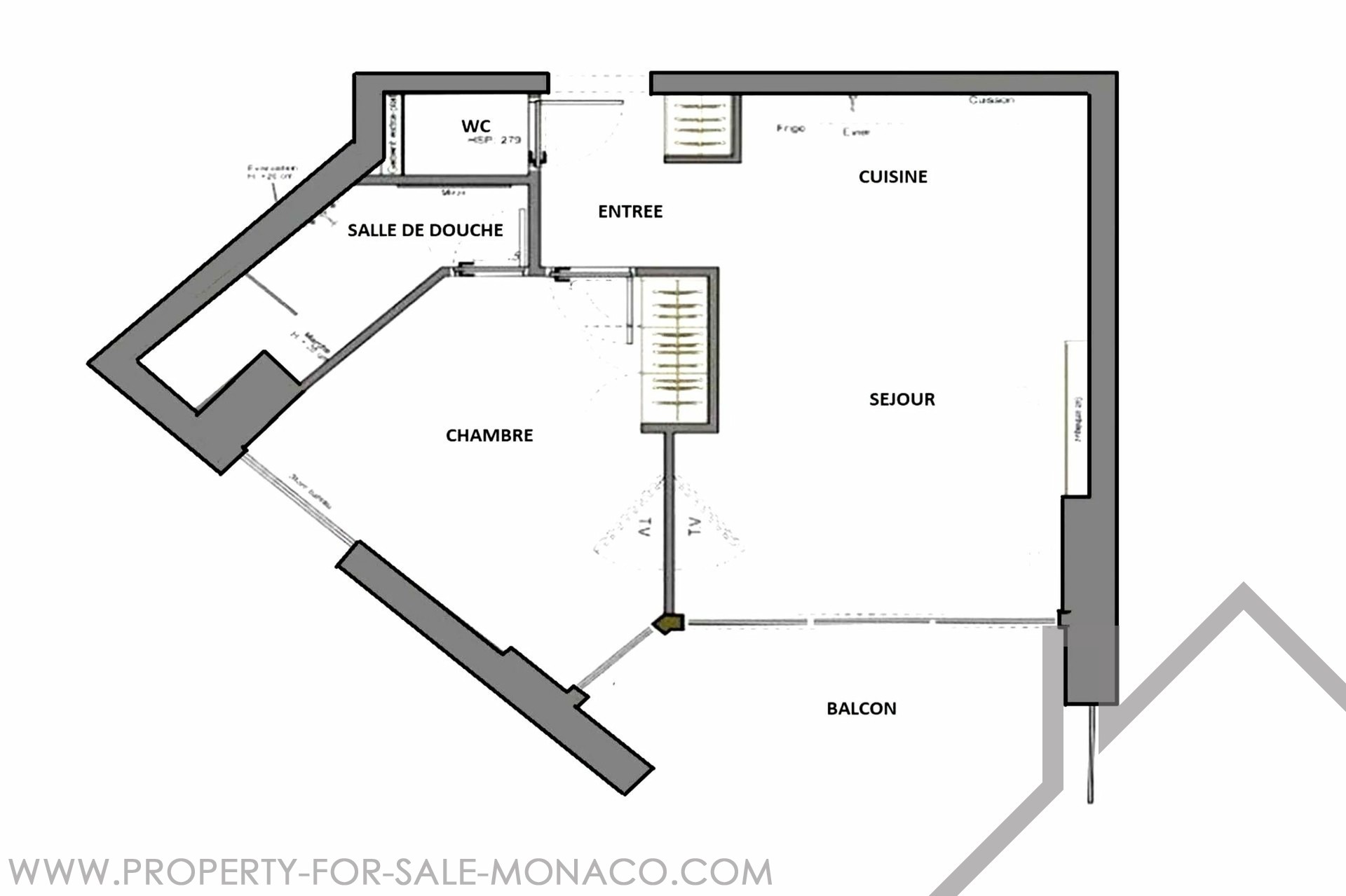 L'appartement est composé comme suit : Entrée, salle à manger avec cuisine américaine, un séjour en suite ouvrant sur le balcon vue sur la mer et la Principauté, une chambre, une salle de douche. Une cave. Possibilité parking en supplément, 300.000 €