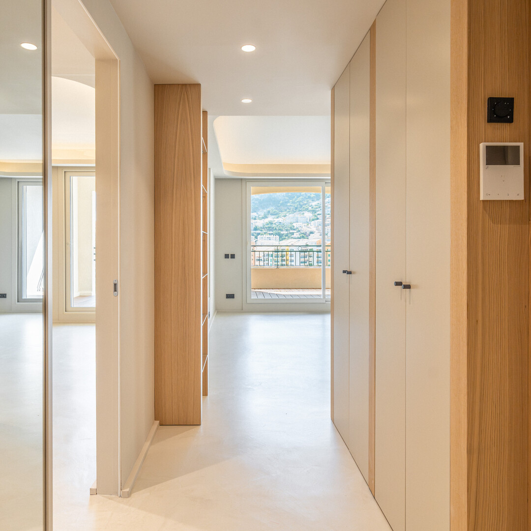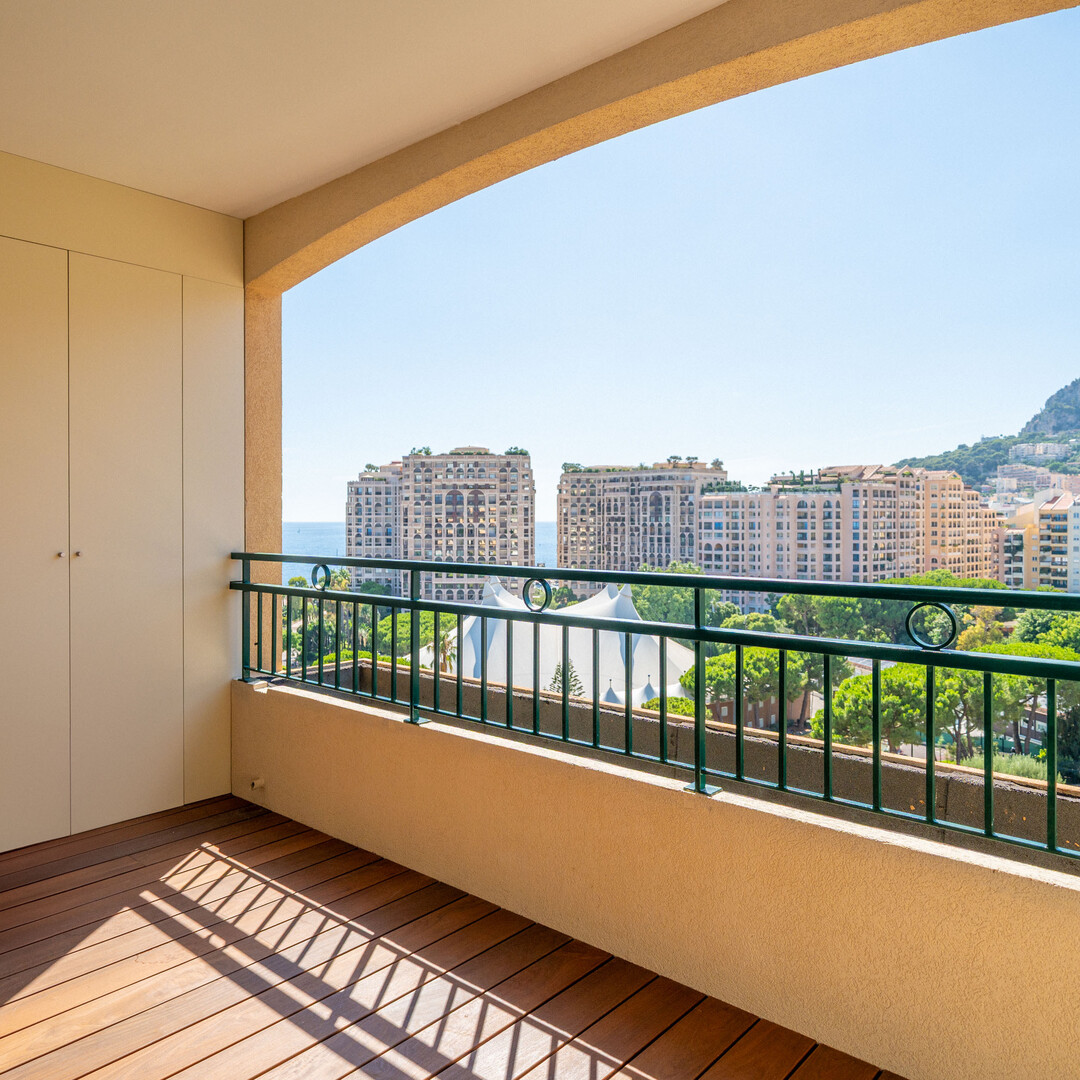 Appartement 2 pièces en étage élevé sur le port de Fontvieille, avec loggias offrant une vue dégagée sur la Roseraie Princesse Grace. Résidence avec concierge et piscine. Parking et cave inclus.