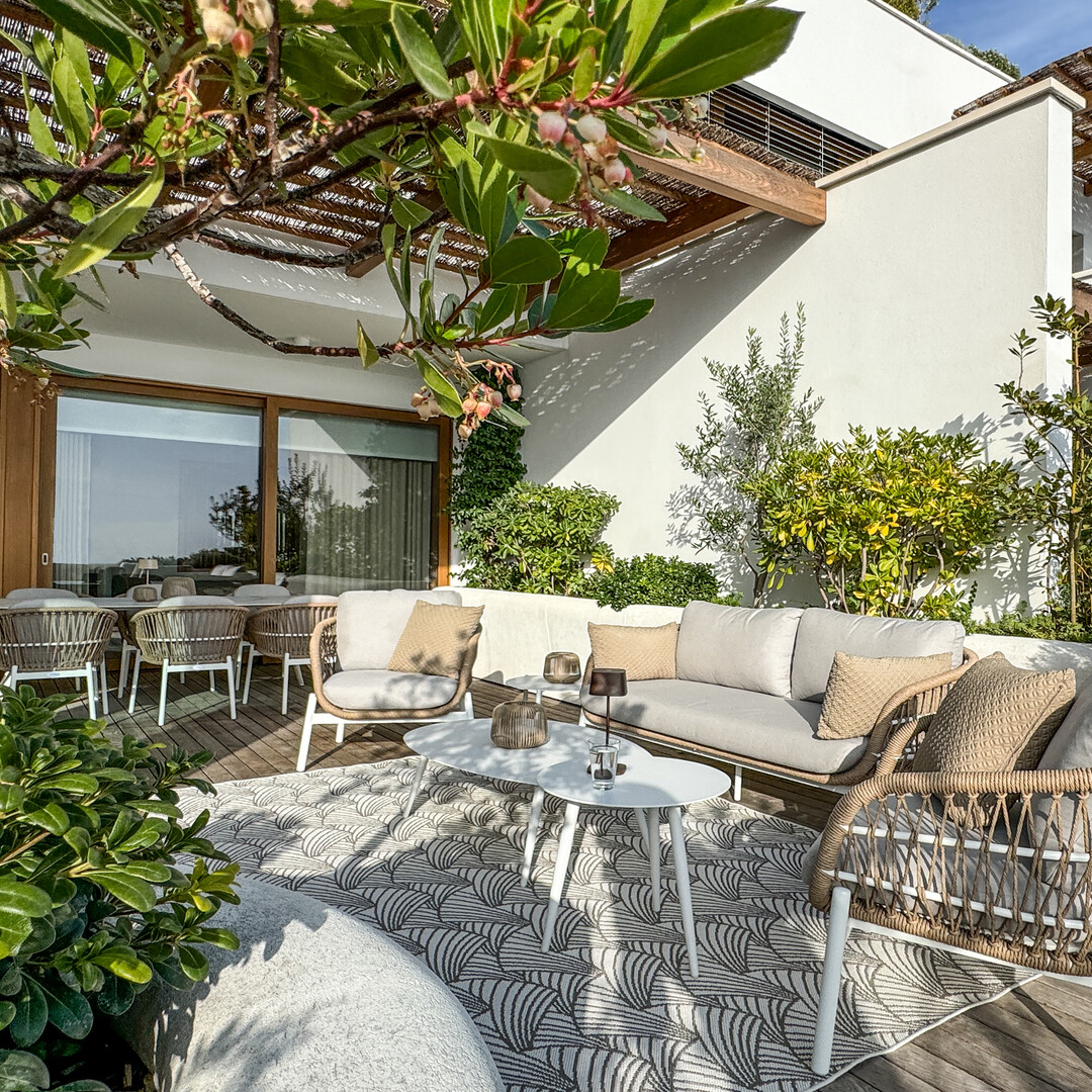 L'appartement dispose d'une terrasse spacieuse de 53 m² qui offre une vue panoramique imprenable sur la mer.
