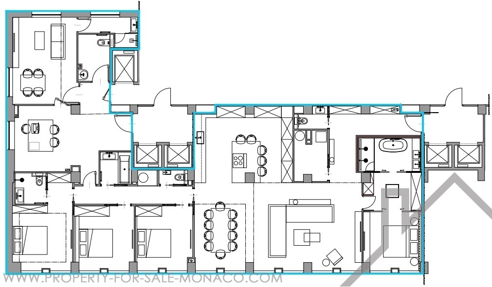 Situé sur le port Hercule, dans un immeuble avec concierge, magnifique appartement entièrement rénové avec des matériaux de qualité, composé d'un hall d'entrée, toilette invités, séjour, salle à manger, magnifique cuisine entièrement équipée, buanderie, chambre de maître avec dressing et salle de bains complète, 3 autres chambres avec placard dont une avec salle de bains complète, salle de douche, toilette séparée, partie bureau composé d'un grand bureau avec salle de réunion, 2ème bureau, salle d'eau, salle de bains, porte de service, climatisation.
