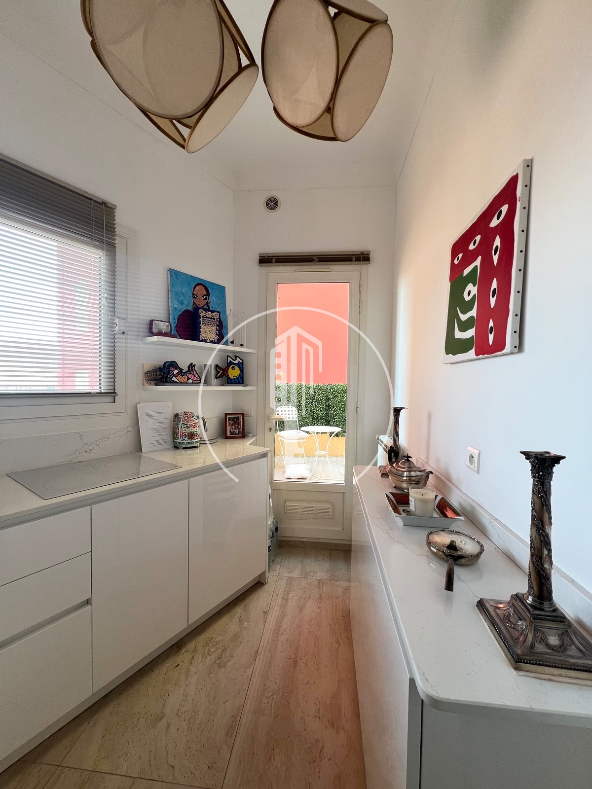 Dans le quartier du Jardin Exotique, cette maison de 183 m2 offre 140 m2 habitables, 43 m2 de surface extérieure, 4 pièces et est répartie sur trois niveaux. Elle est composée de :