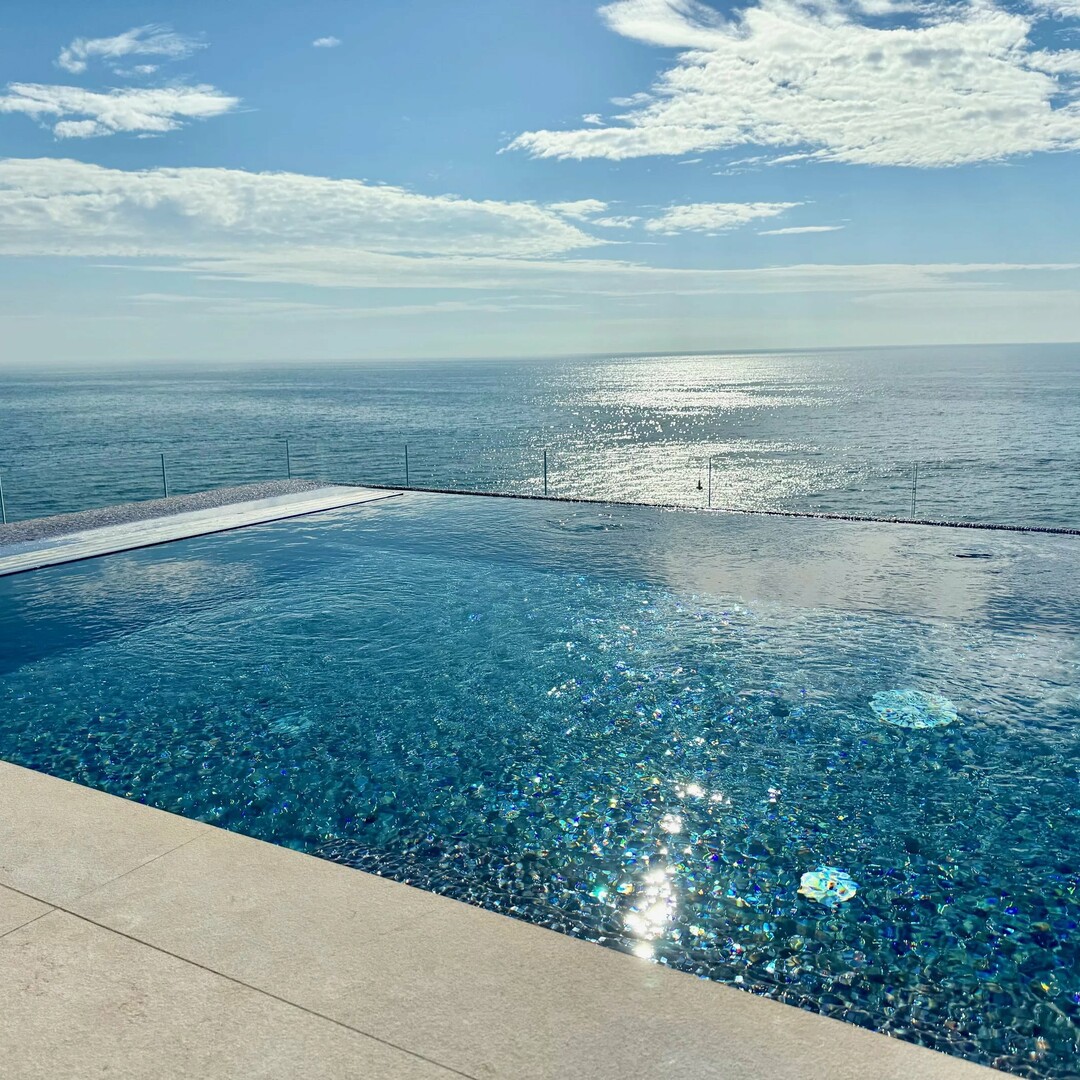 Au deuxième niveau, sur le toit-terrasse, se trouve une piscine exceptionnelle, qui donne l'illusion de flotter directement sur la mer. Ce toit-terrasse est également agrémenté d'un studio indépendant, idéal pour recevoir ou pour un espace privatif supplémentaire.