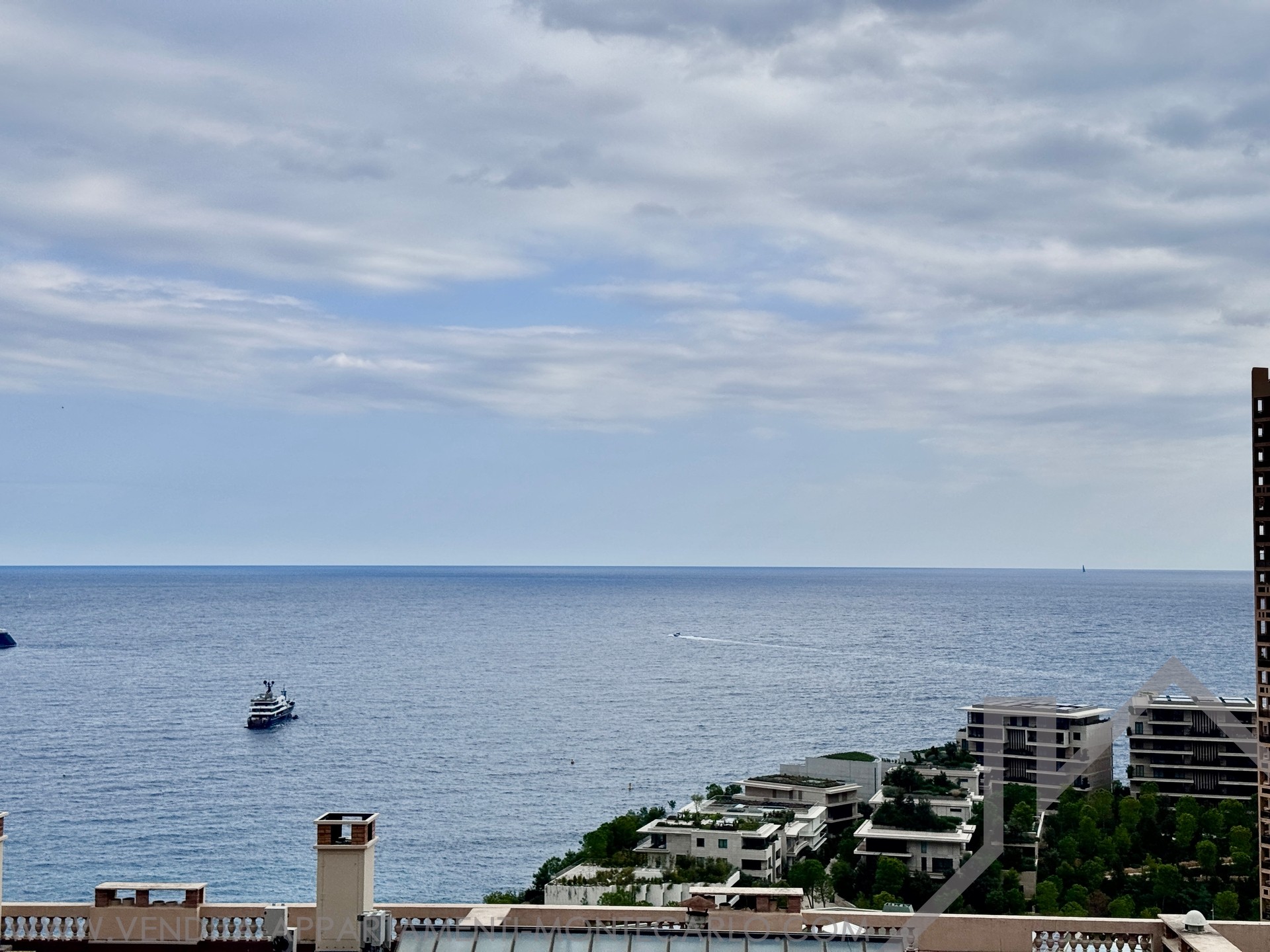 L'appartement dispose d’une vue mer spectaculaire, s'étendant de la Pointe de Cap Martin à gauche jusqu’au Musée Océanographique à droite.