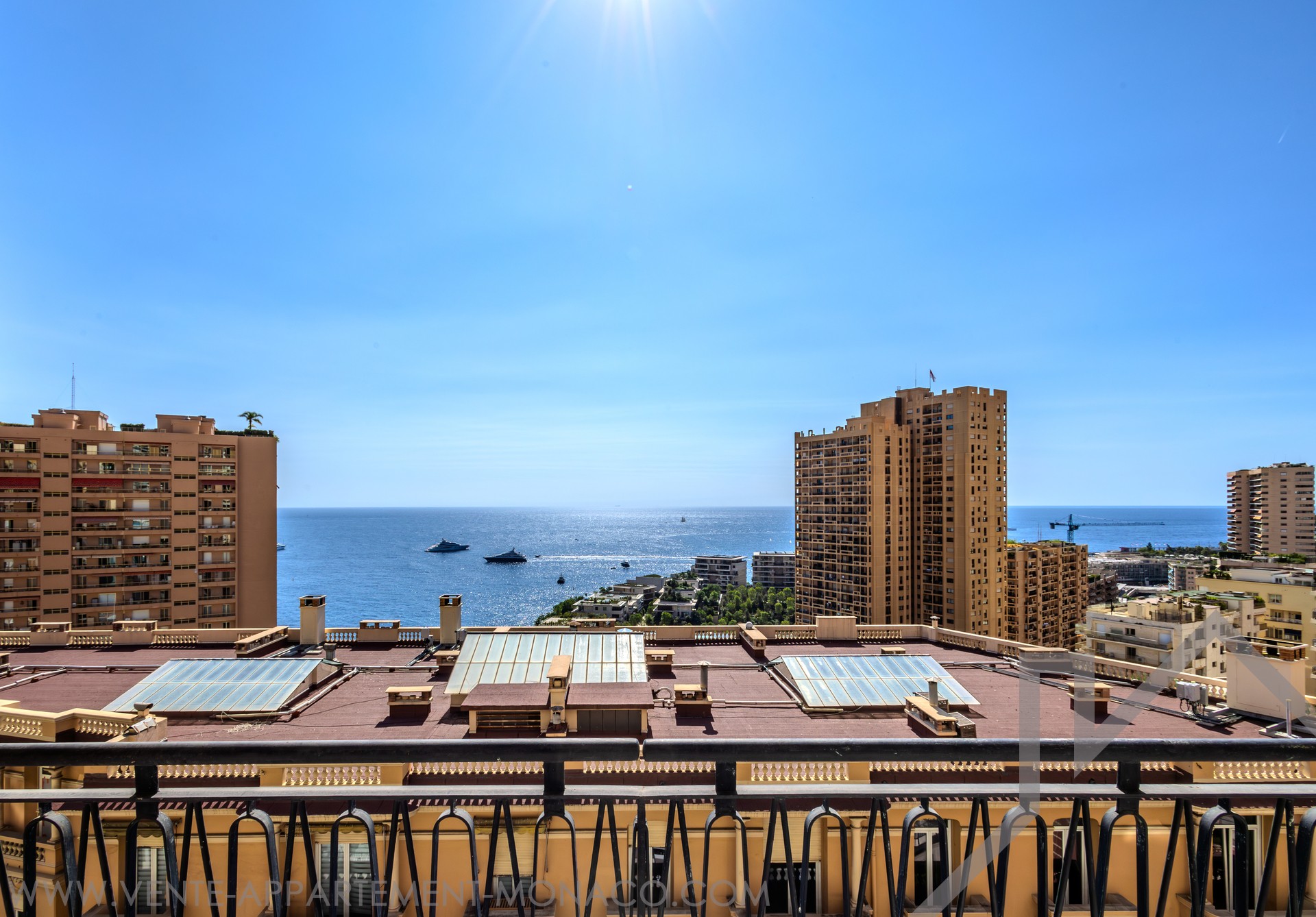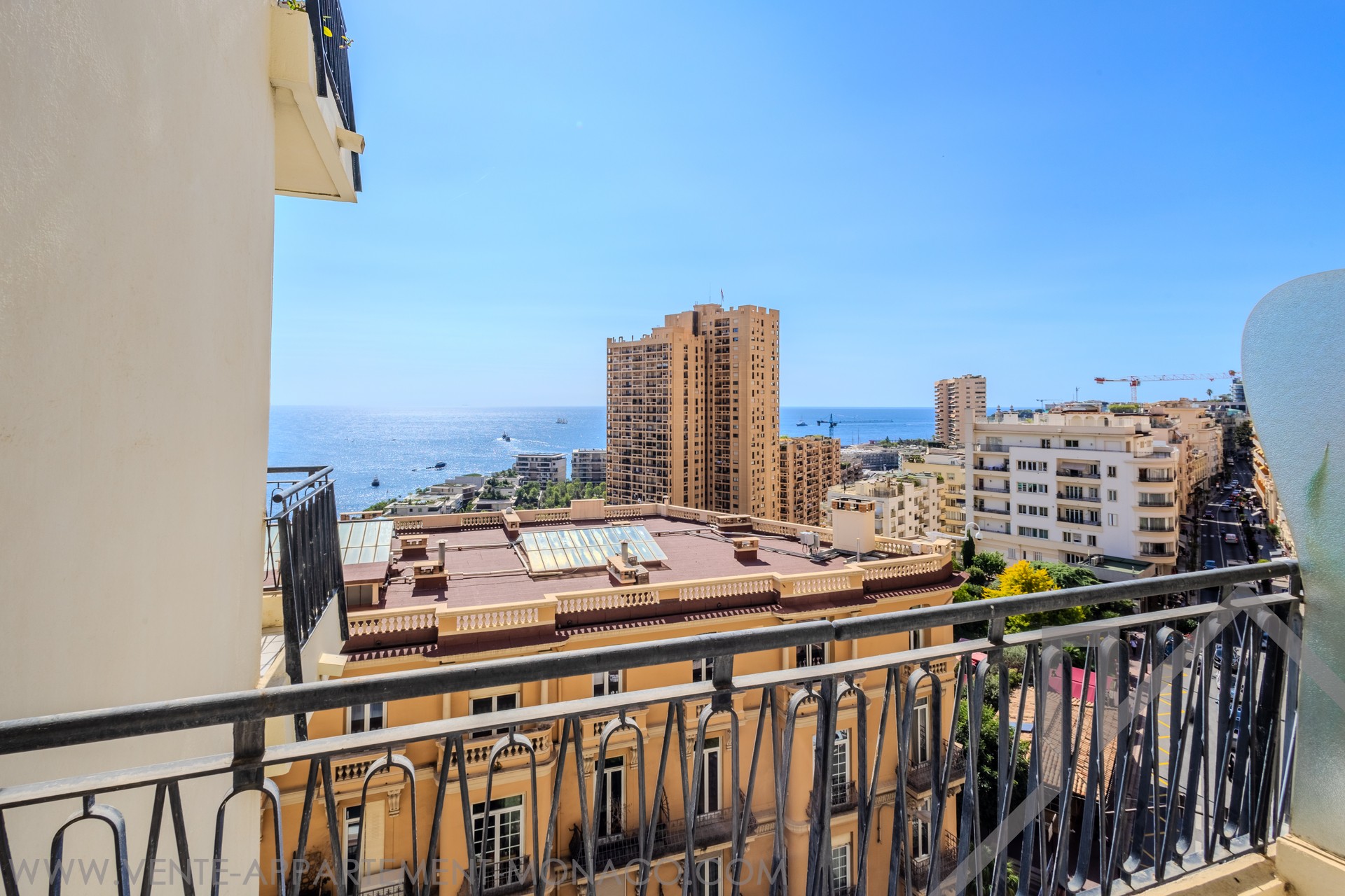 L'appartement dispose d’une vue mer spectaculaire, s'étendant de la Pointe de Cap Martin à gauche jusqu’au Musée Océanographique à droite.