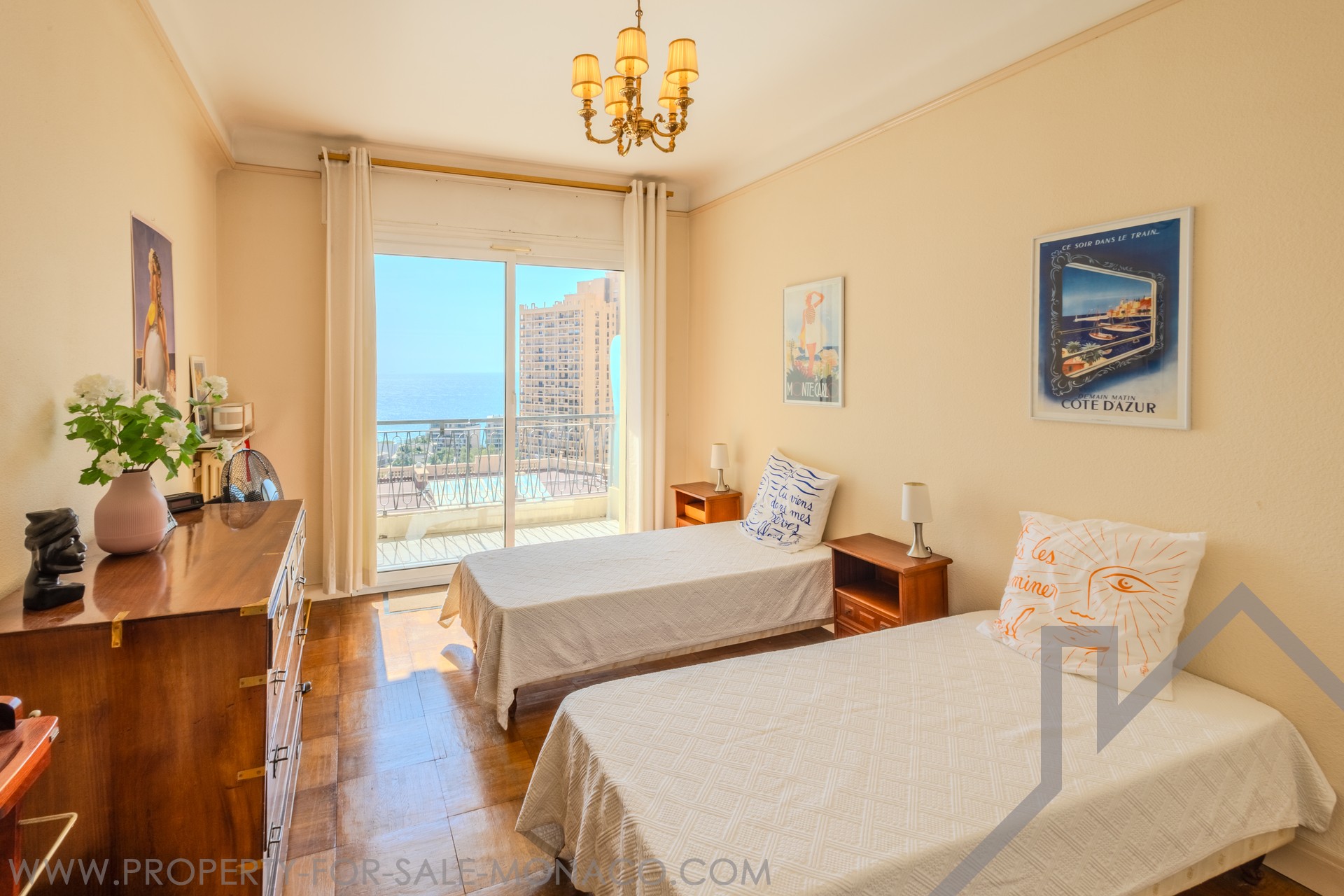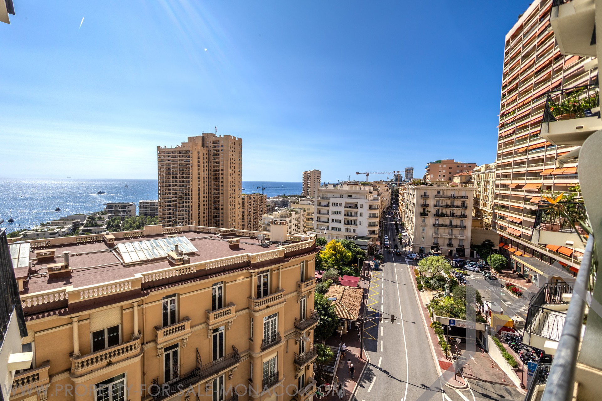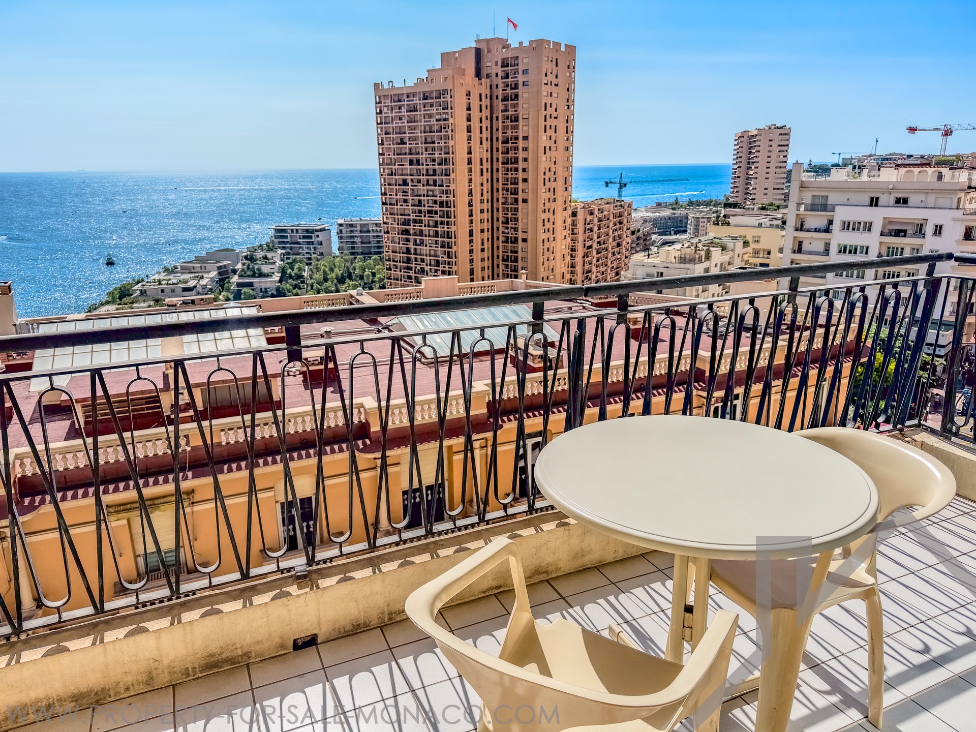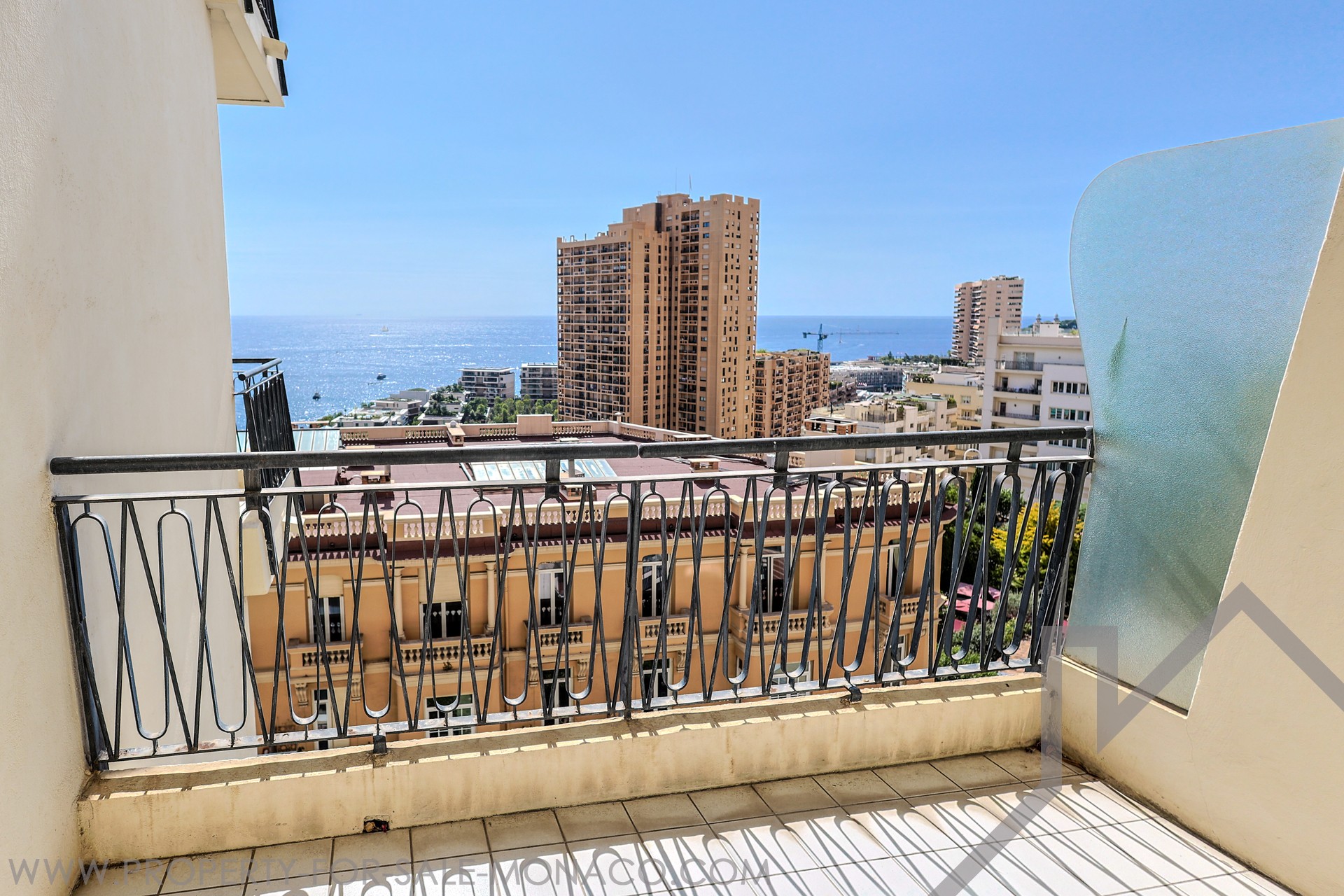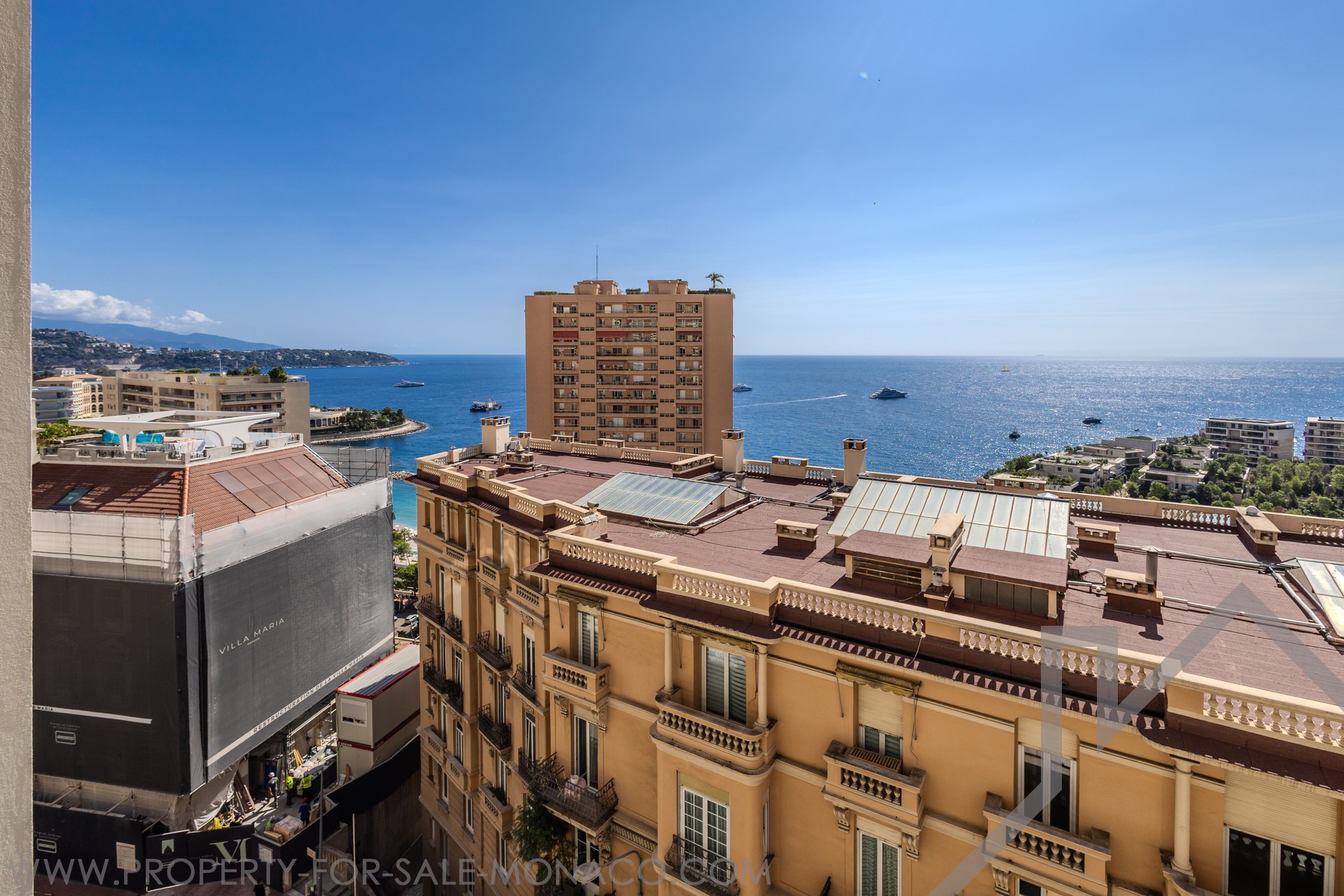 L'appartement dispose d’une vue mer spectaculaire, s'étendant de la Pointe de Cap Martin à gauche jusqu’au Musée Océanographique à droite.