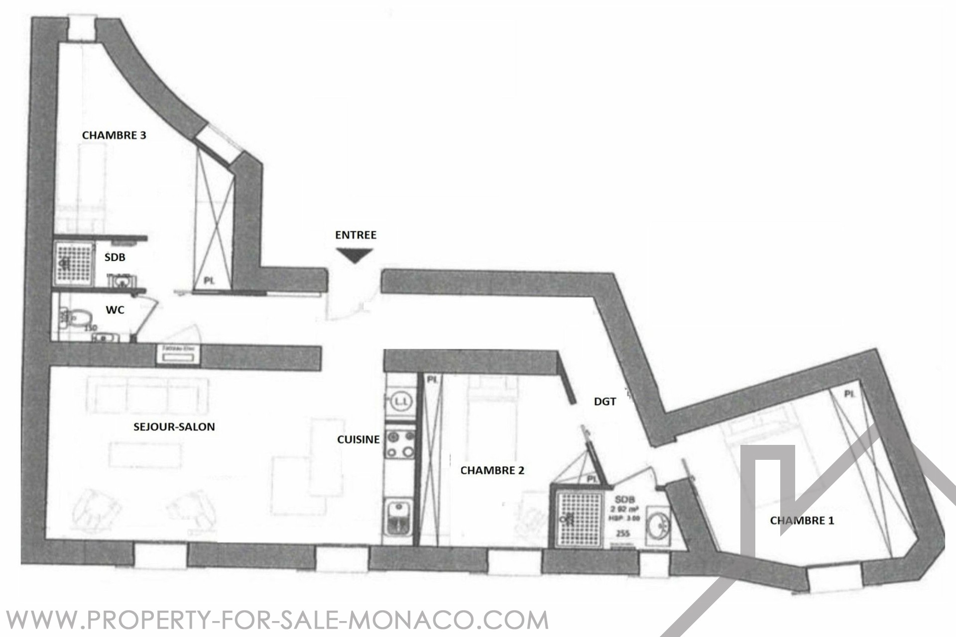 Bel appartement de 4 pièces, rénové, sous la Loi 887, situé sur le boulevard des Moulins, dans un immeuble bourgeois.