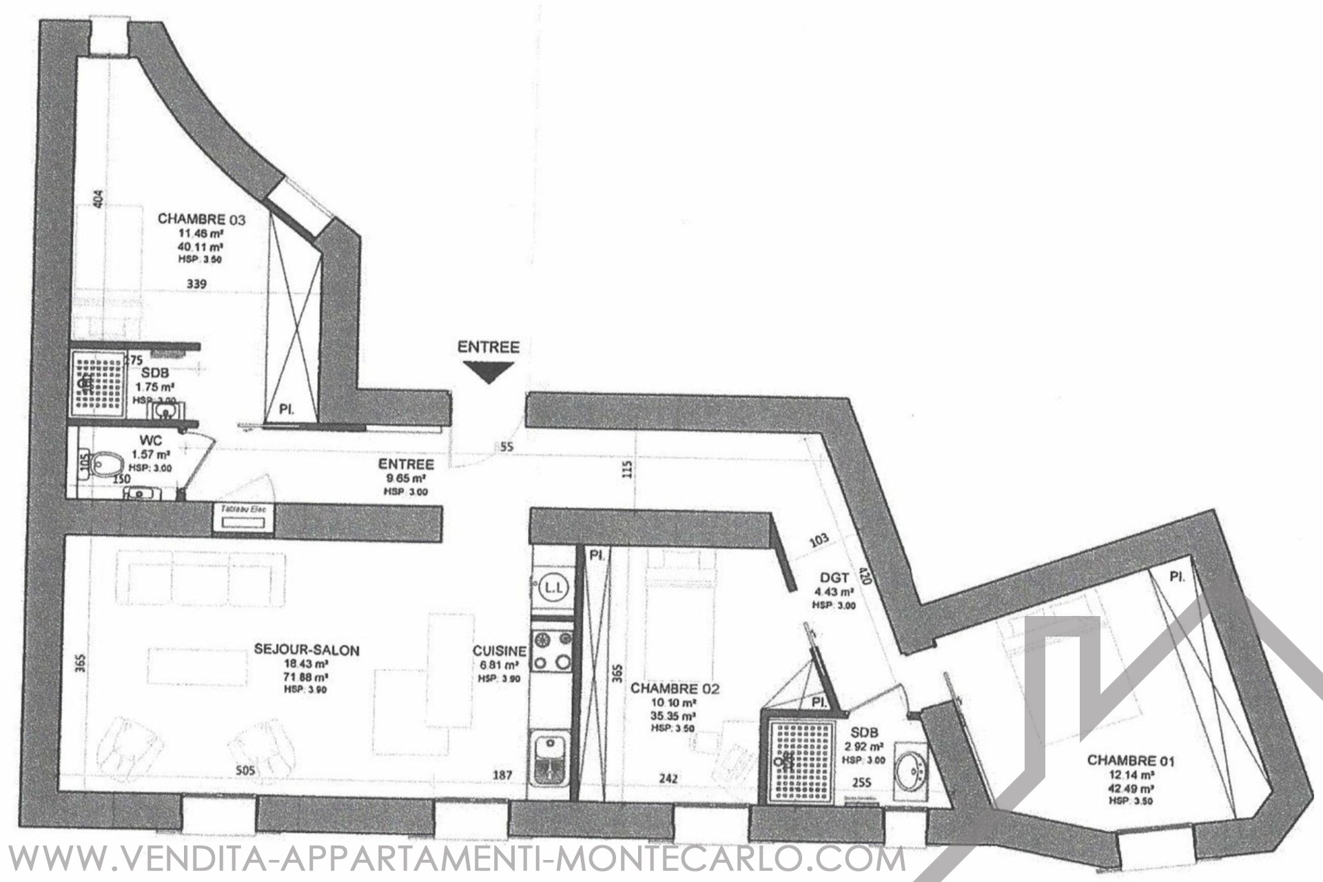 Bel appartement de 4 pièces, rénové, sous la Loi 887, situé sur le boulevard des Moulins, dans un immeuble bourgeois.
