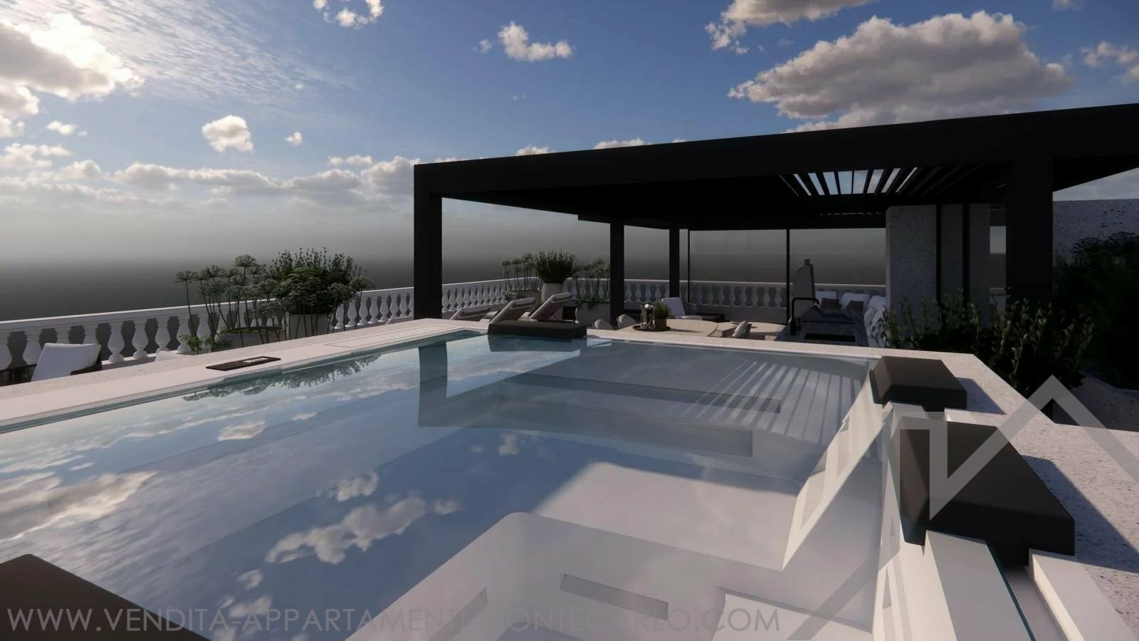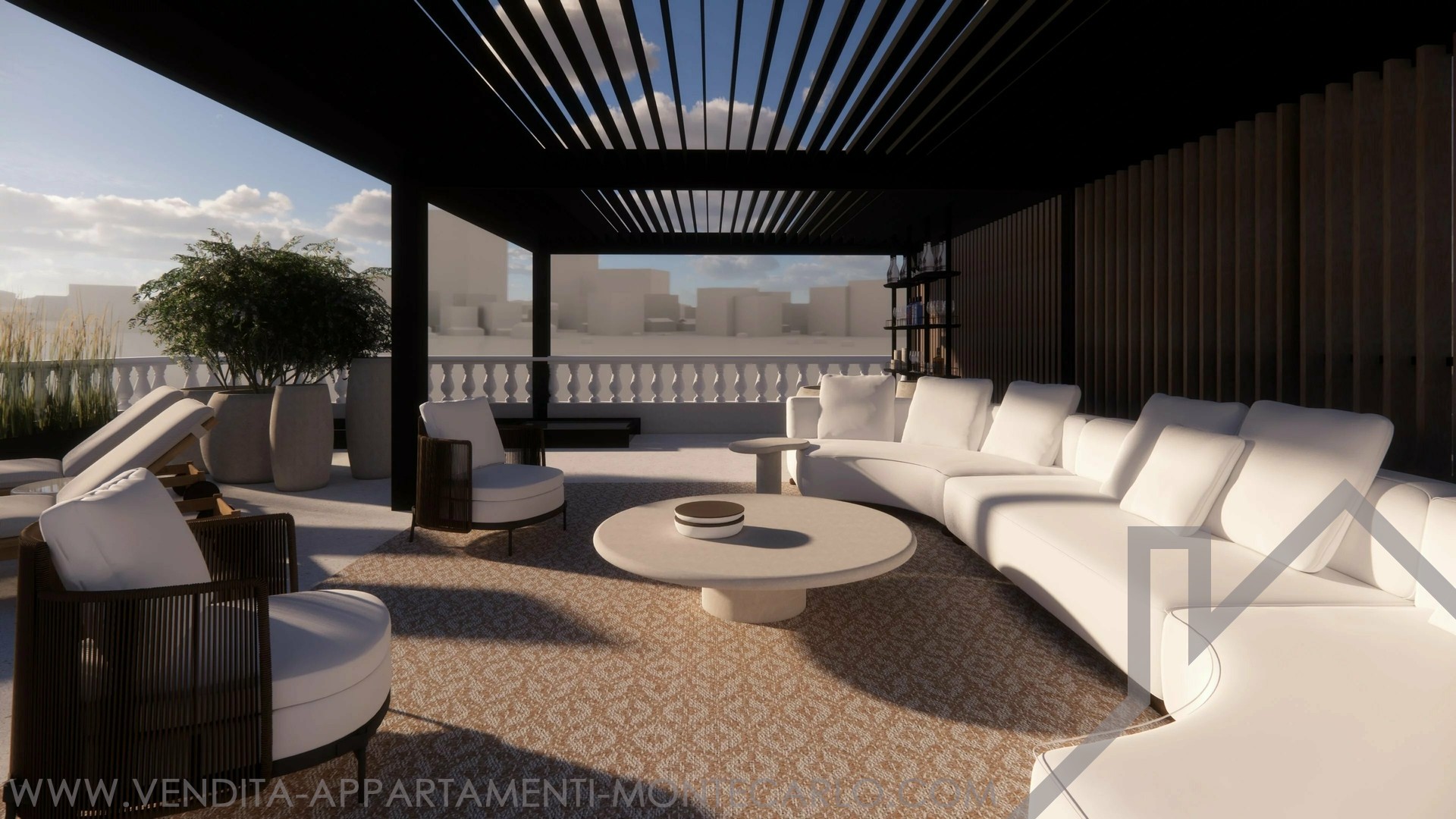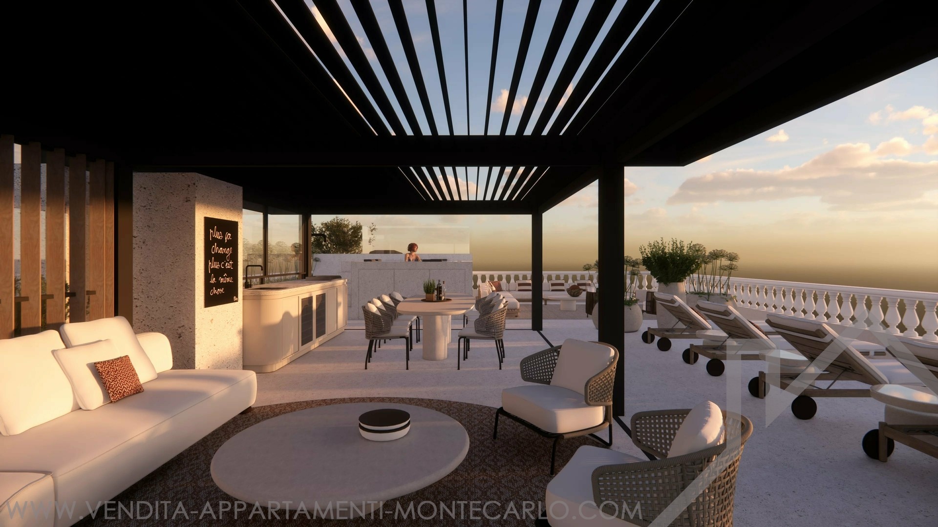 À l'étage supérieur, vous pourrez profiter d'un rooftop avec une magnifique pergola offrant une vue panoramique époustouflante, une rareté inestimable à Monaco.