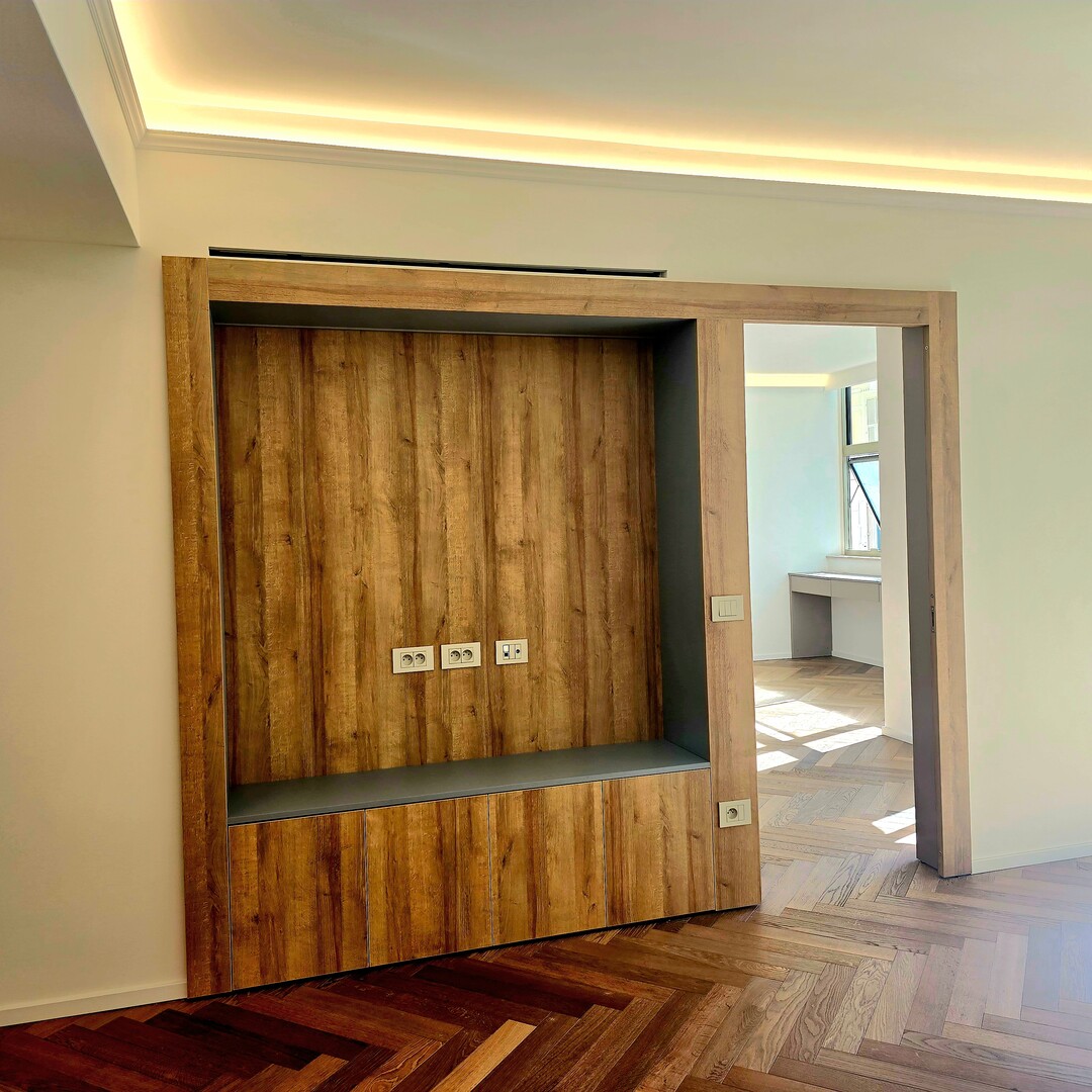 Il se compose de deux chambres en suite, dont une master bedroom avec dressing aménagé, d’une cuisine séparée entièrement équipée, et d’un toilette invité. Les matériaux sont de haute qualité, le parquet apporte une touche chaleureuse et contemporaine, et les nombreux rangements optimisent l’espace de vie.