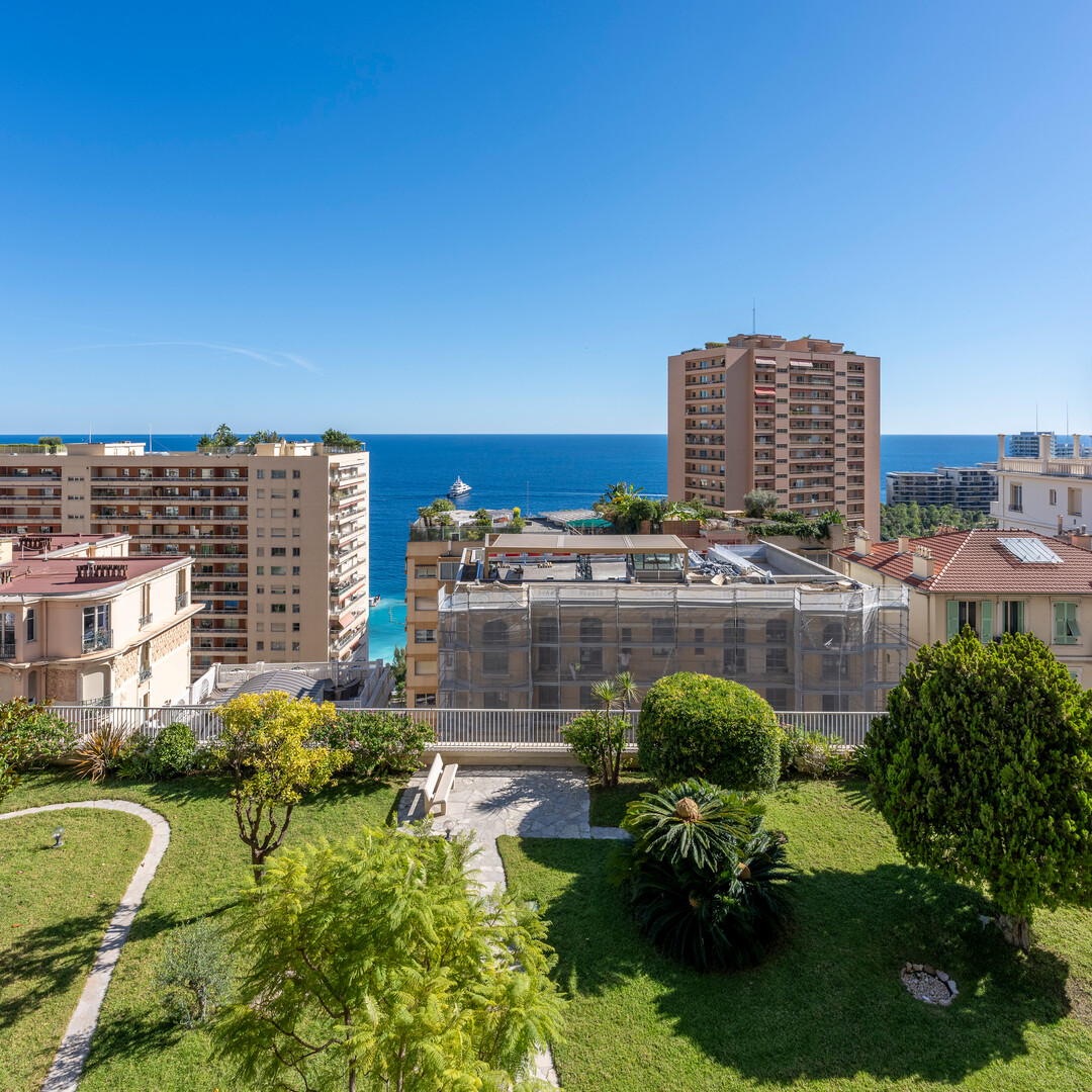 Située dans la prestigieuse résidence Les Abeilles, à quelques pas du Boulevard des Moulins et des plages du Larvotto, cette adresse rare séduit par son jardin privatif, sa conciergerie et son cadre de vie raffiné. L’appartement, entièrement rénové avec des prestations haut de gamme, offre de superbes volumes et une vue mer panoramique depuis sa vaste terrasse.