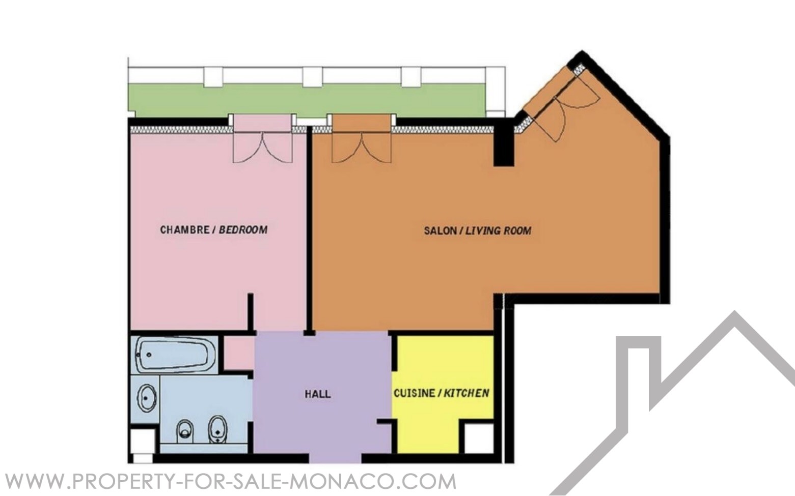 L’appartement se compose d’une élégante entrée, d’un spacieux séjour, d’une cuisine indépendante, d’une belle chambre et d’une salle de bains complète.