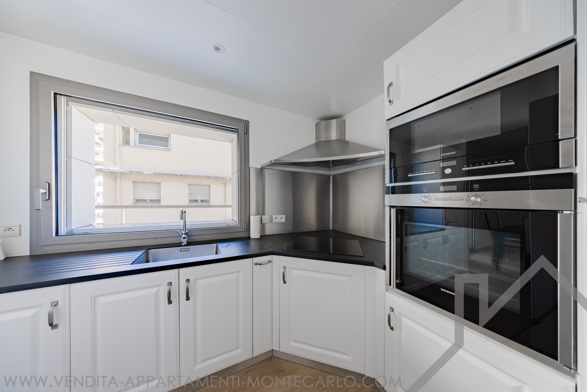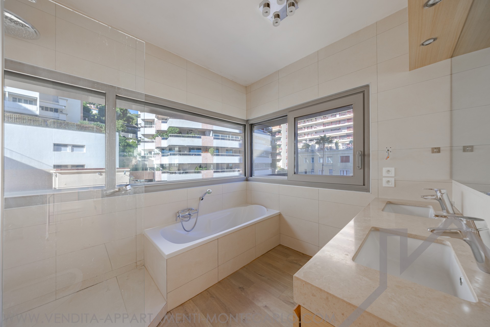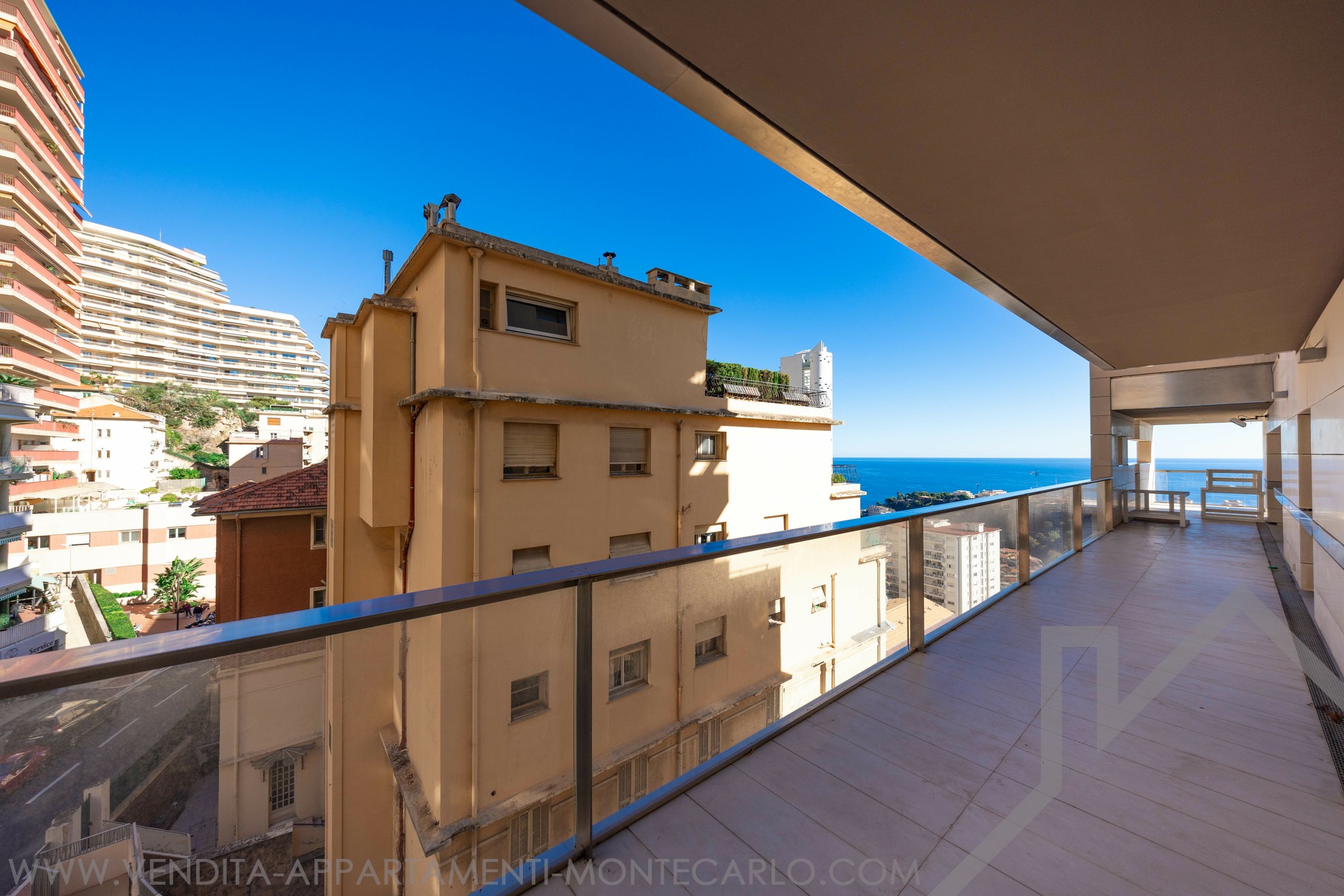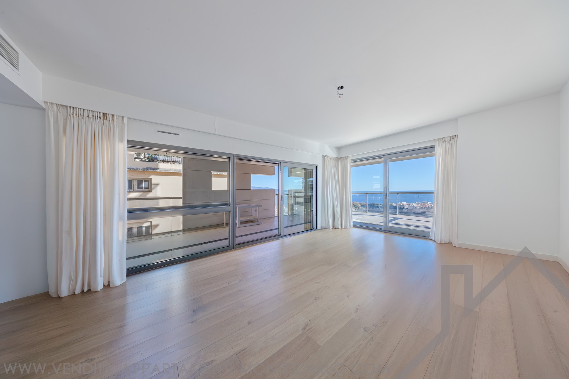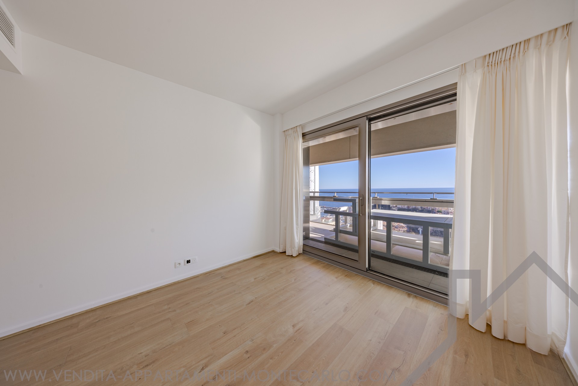 Un magnifique appartement rénové offrant une vue spectaculaire sur le Rocher de Monaco et sur la mer.