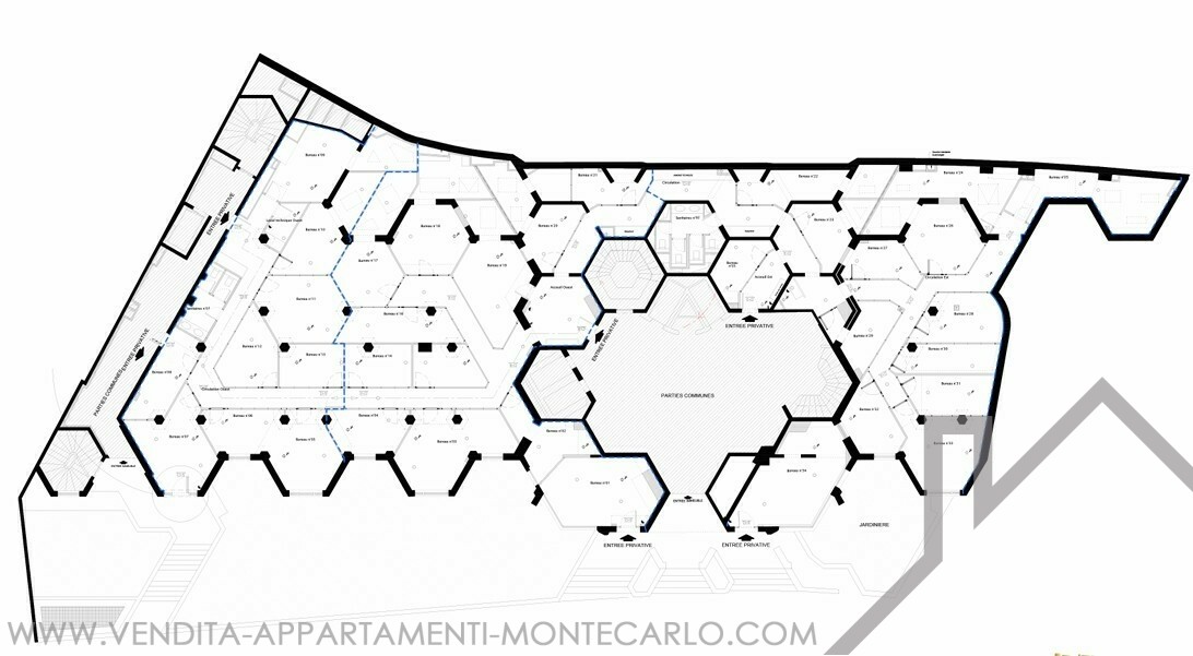 Situés au cœur du Carré d'Or, dans une Résidence de luxe avec gardiennage 24h/24, à  quelques pas du Casino, de la Résidence du Métropole, des commerces, plages et commodités, magnifique ensemble de 35 bureaux indépendants, entièrement rénovés, cloisonnés en verre translucide permettant un éclairage diaphane tout en assurant la confidentialité de chaque bureau. Matériaux haut de gamme et finitions raffinées. Loyer annuel potentiel de 1.495.800 €uros HT.