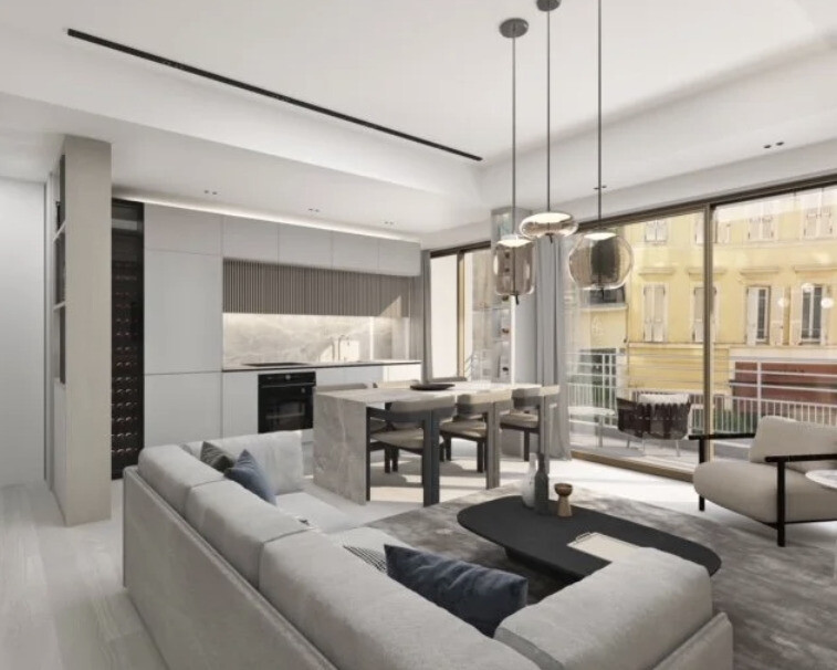Un superbe appartement de 3 pièces à usage mixte (habitation ou bureau), situé au 2ᵉ étage (équivalent à la hauteur d’un 3ᵉ niveau) de l’immeuble « Le Petrel », une résidence moderne avec ascenseur idéalement placée sur l’unique rue piétonne de la Principauté.