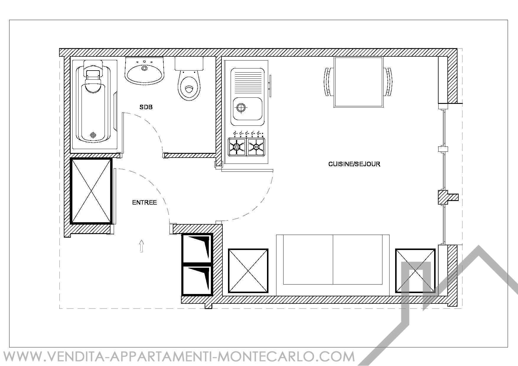 Entièrement rénové, lumineux et raffiné, il se trouve à seulement quelques pas de la Place du Casino. Cet espace accueillant comprend un hall d’entrée, une pièce principale parfaitement aménagée et une salle de bain équipée.