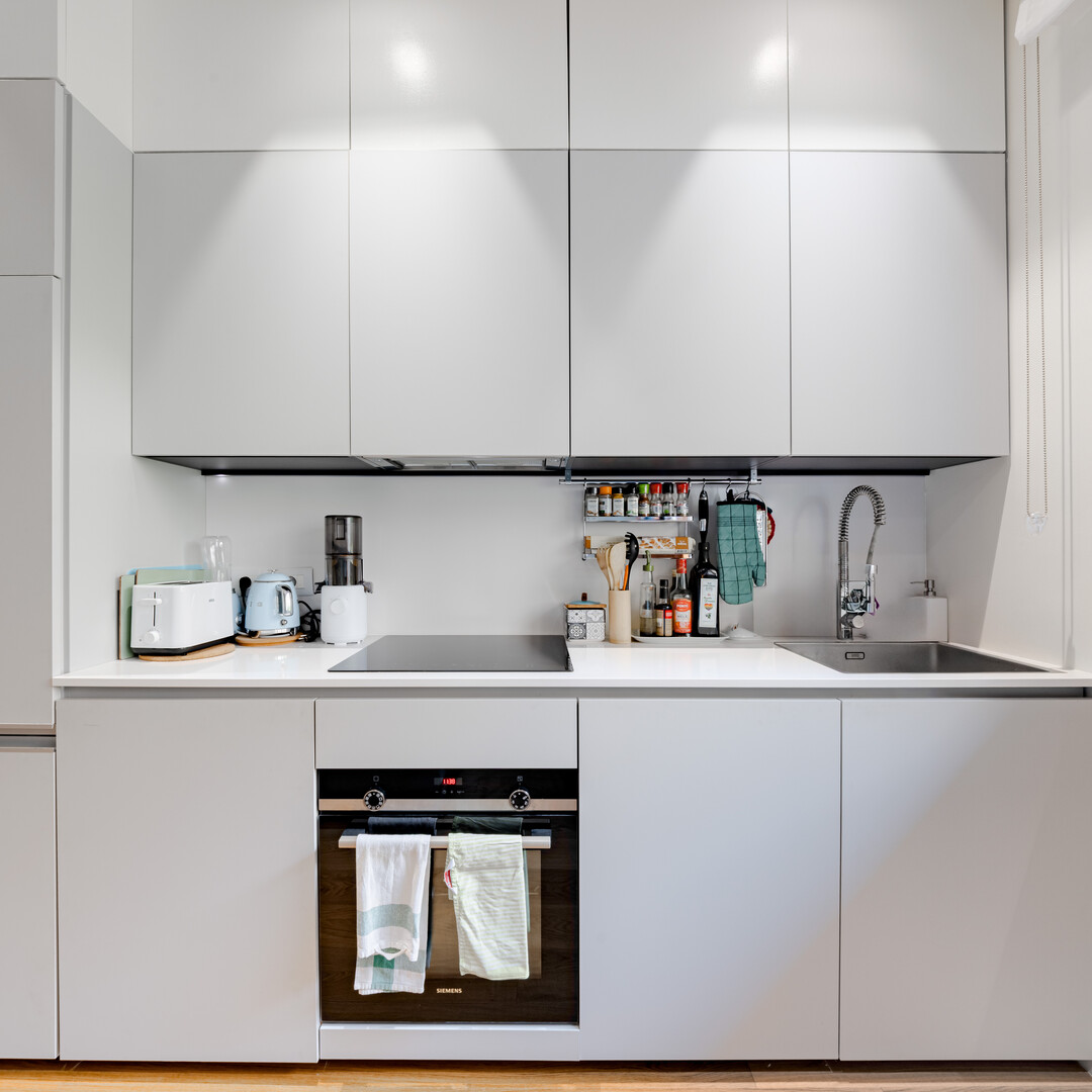 L’appartement s’ouvre sur une entrée desservant, sur la gauche, une élégante salle d’eau comprenant toilettes, lavabo et une douche à l’italienne moderne.