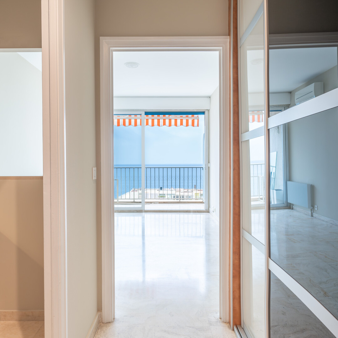 Bel appartement lumineux de deux pièces avec 50 m² d’espace de vie et une terrasse de 10 m² offre une vue sur la mer à couper le souffle.