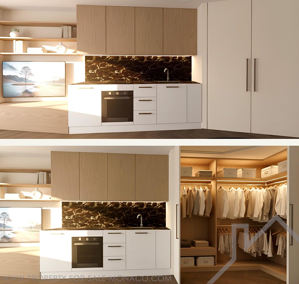 Appartement de type studio exceptionnel avec alcôve séparée à un étage élevé d’une résidence prestigieuse au cœur de Monaco, avec un service de concierge 24h/24 et proche de toutes les activités commerciales (y compris Carrefour City, située au rez-de-chaussée de la résidence). L’appartement comprend un hall d’entrée, une cuisine intégrée au salon qui s’ouvre sur la généreuse loggia avec vue sur le casino et la mer, une alcôve pour préserver une séparation idéale entre l’espace de vie et l’espace couchage, ainsi que la salle de bain complète. L’appartement est actuellement en rénovation et sera livré clé en main selon le rendu présenté ici. Possibilité d’acheter un grand parking au prix de 400 000 €.