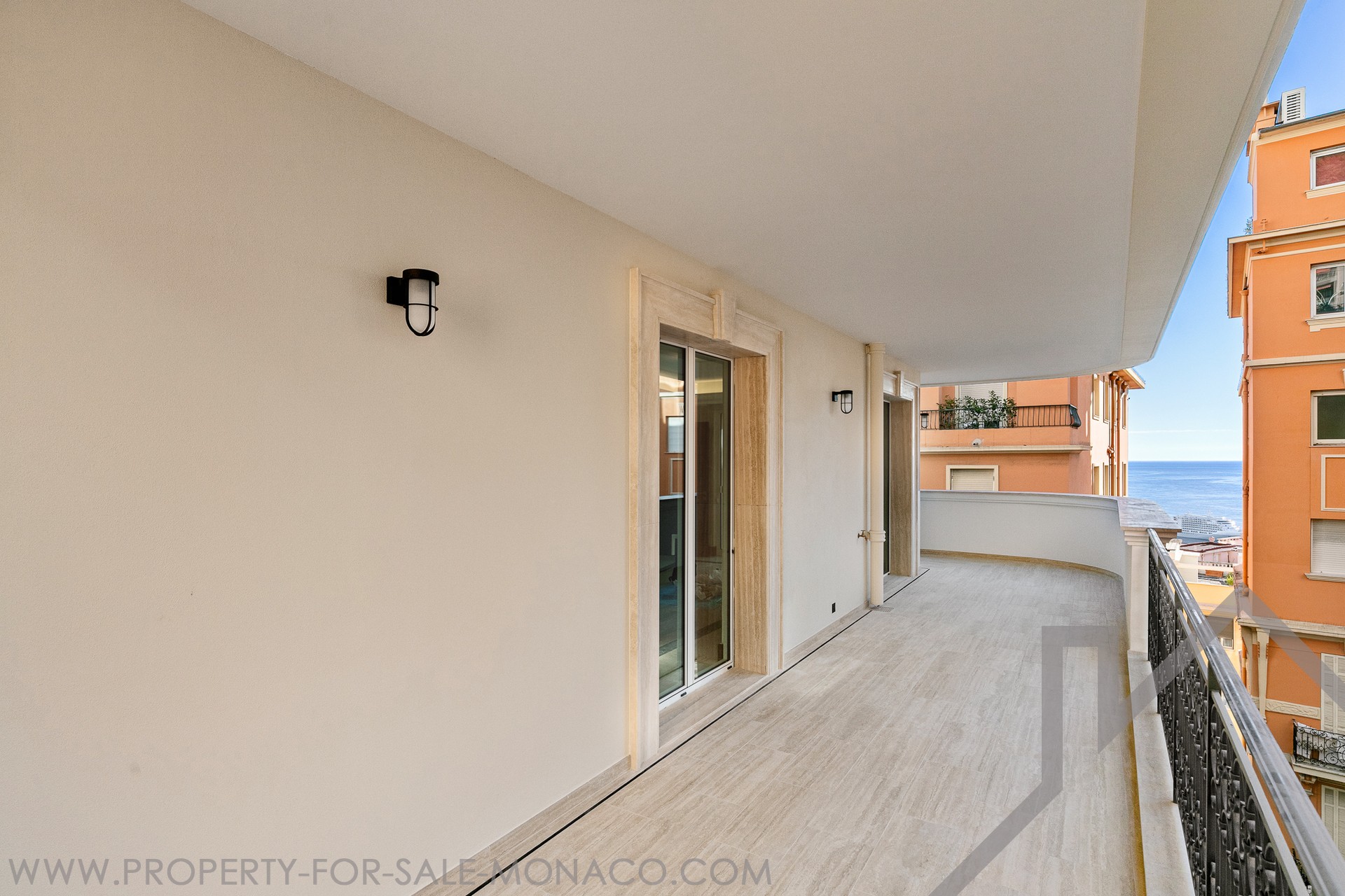 Les principales pièces s'ouvrent sur une grande terrasse d'angle vue citadine de 40m² permettant de profiter au maximum de l'extérieur et du climat agréable dont bénéficie la Principauté de Monaco tout au long de l'année.
