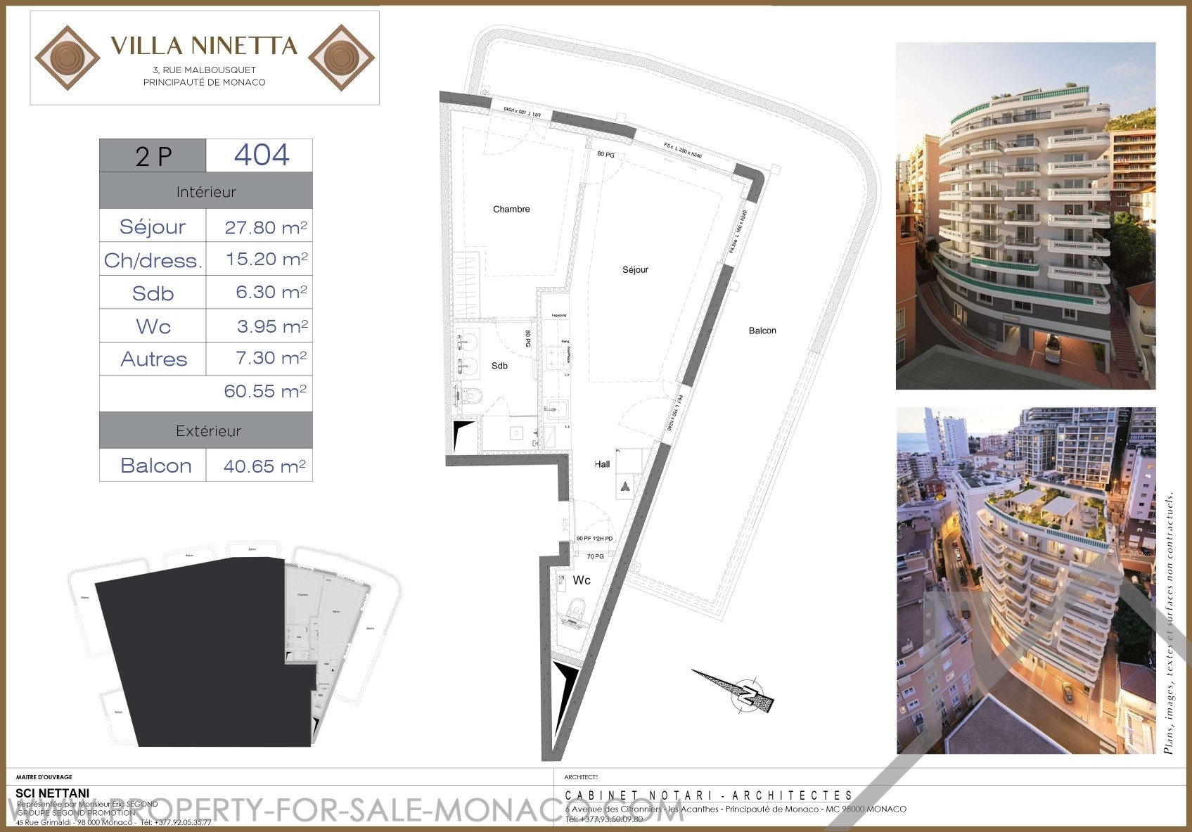 Superficie hab. : 60.55 m²