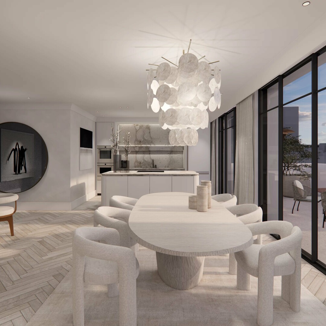 Cet appartement est composé de : Une magnifique entrée, un double séjour salle à manger donnant sur une terrasse, une cuisine americaine entièrement aménagée et équipée avec les plus belles finitions, une chambre de maître avec une salle de douches et une baignoire, 2 chambres en suite, 2 spacieuses et profondes terrasses, un toit terrasse entièrement aménagé avec pergola.