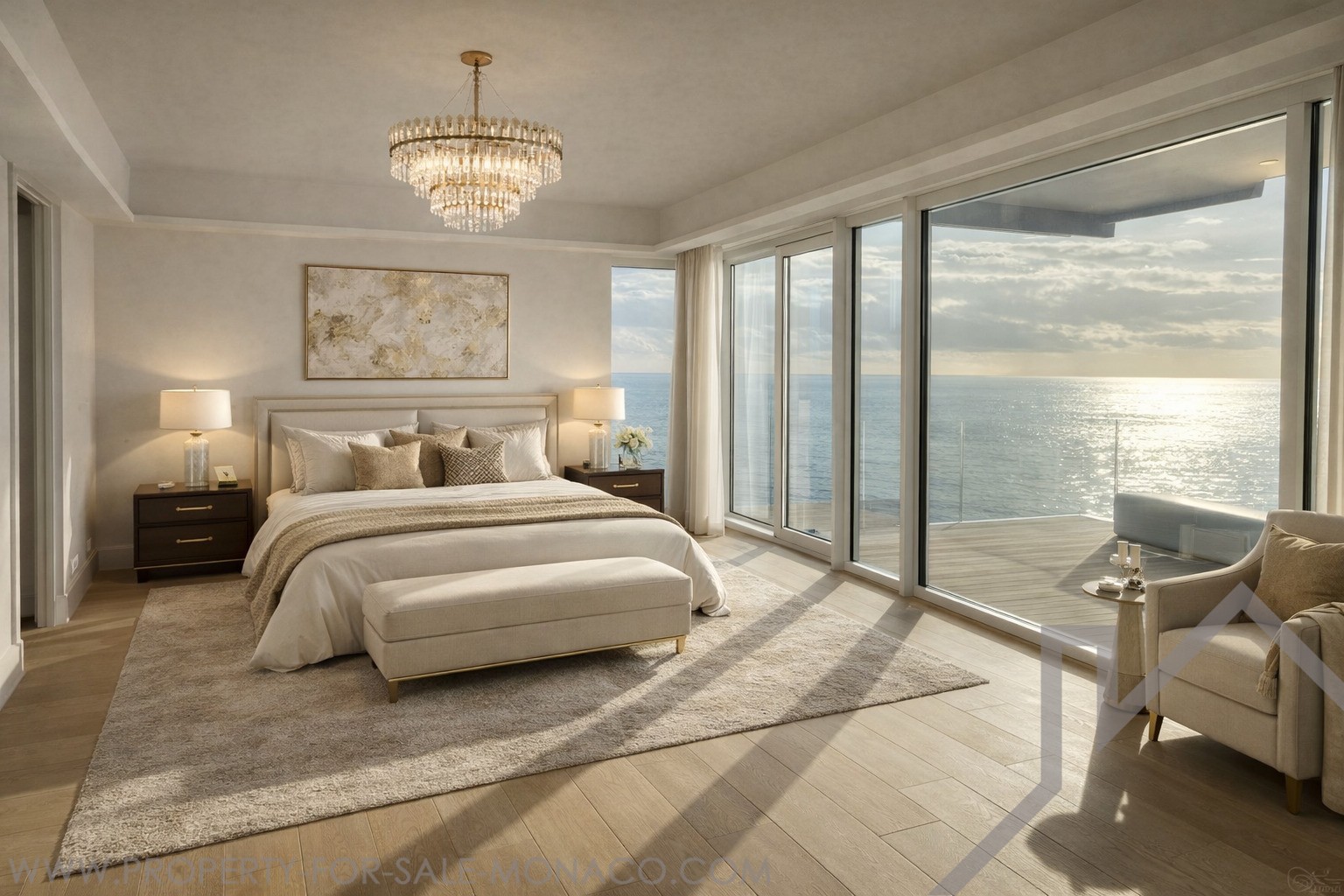 L'appartement d'angle et traversant baigné de lumière face à la mer, bénéficiant de la meilleure position, s'ouvre sur de vastes terrasses proposant une vue à 360°.