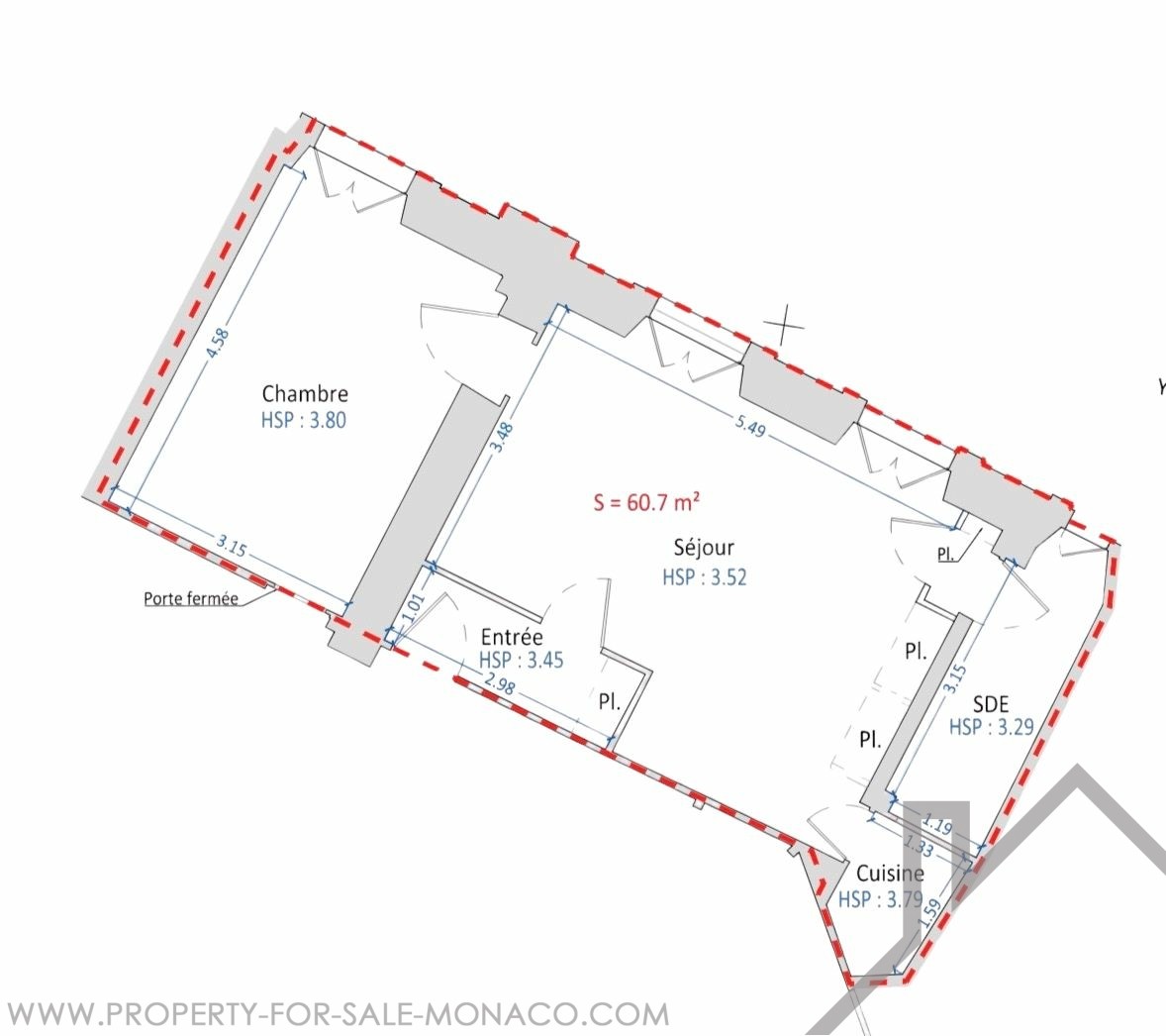 Superficie totale : 60.7 m²