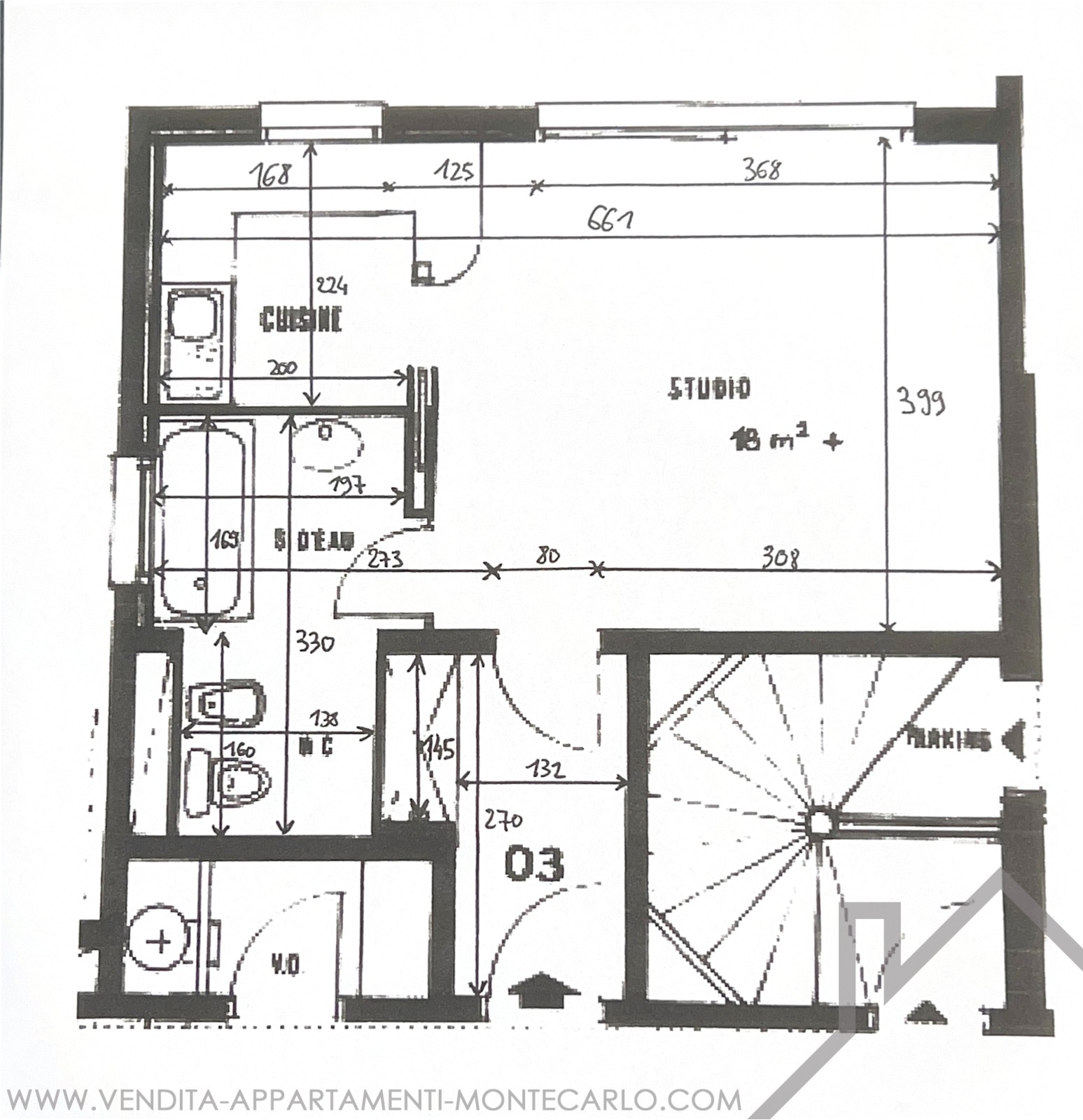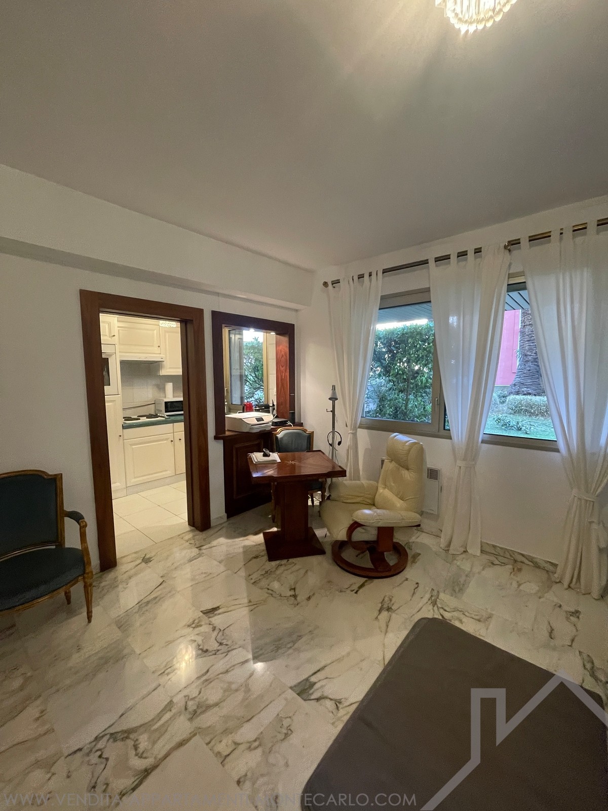 Situé au rez-de-chaussée de l’immeuble “Les Oliviers”, avec concierge, dans le quartier du Jardin Exotique, studio comprenant :