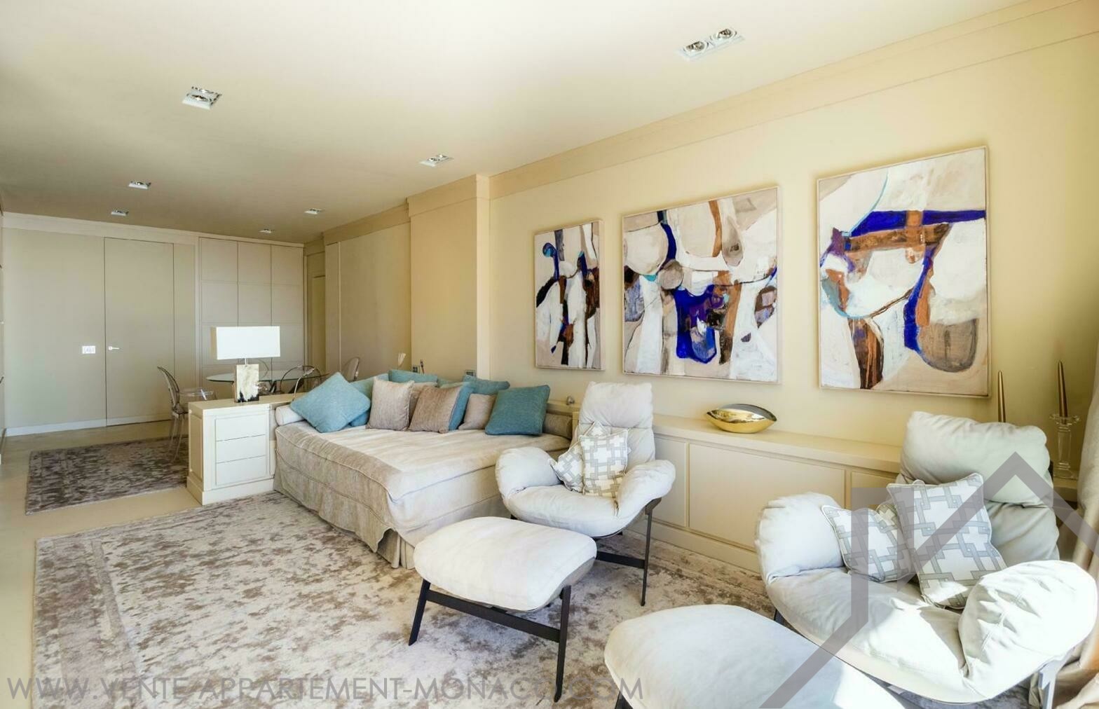 Magnifique appartement de 68 m² en excellent état et meublé, avec une terrasse de 12 m² offrant une vue magnifique sur la mer. Cet appartement de deux chambres est situé au dernier étage d’une résidence avec service de conciergerie, au cœur de la Place des Moulins, à proximité de toutes les commodités et à seulement quelques minutes des plages par ascenseur public. L’appartement comprend un hall d’entrée, un grand salon devant la terrasse donnant sur la mer, une cuisine indépendante et entièrement équipée, une chambre principale avec vue sur la mer, une salle de bain avec douche et toilettes, ainsi que la terrasse.