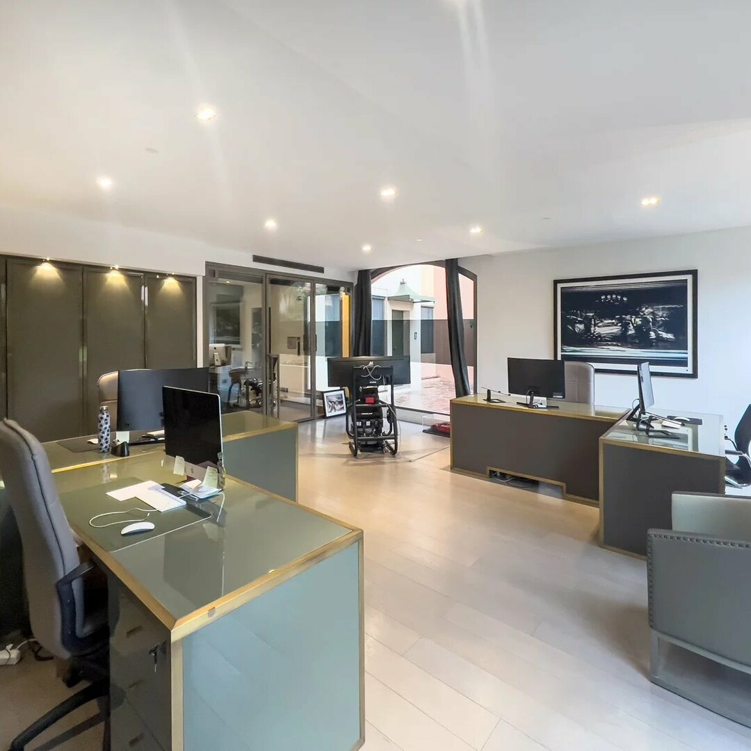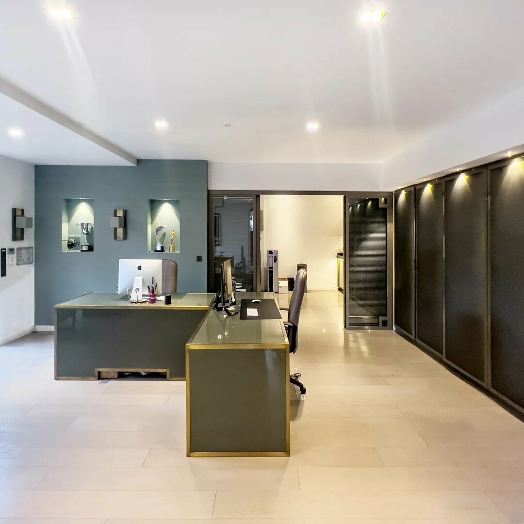 Ce beau bureau a été récemment renové par un architecte d'intérieur de renom utilisant les meilleurs matériaux. Il est situé dans un quartier très calme dans un immeuble en face du port de Fontvieille, à proximité de très bons restaurants et cafés.