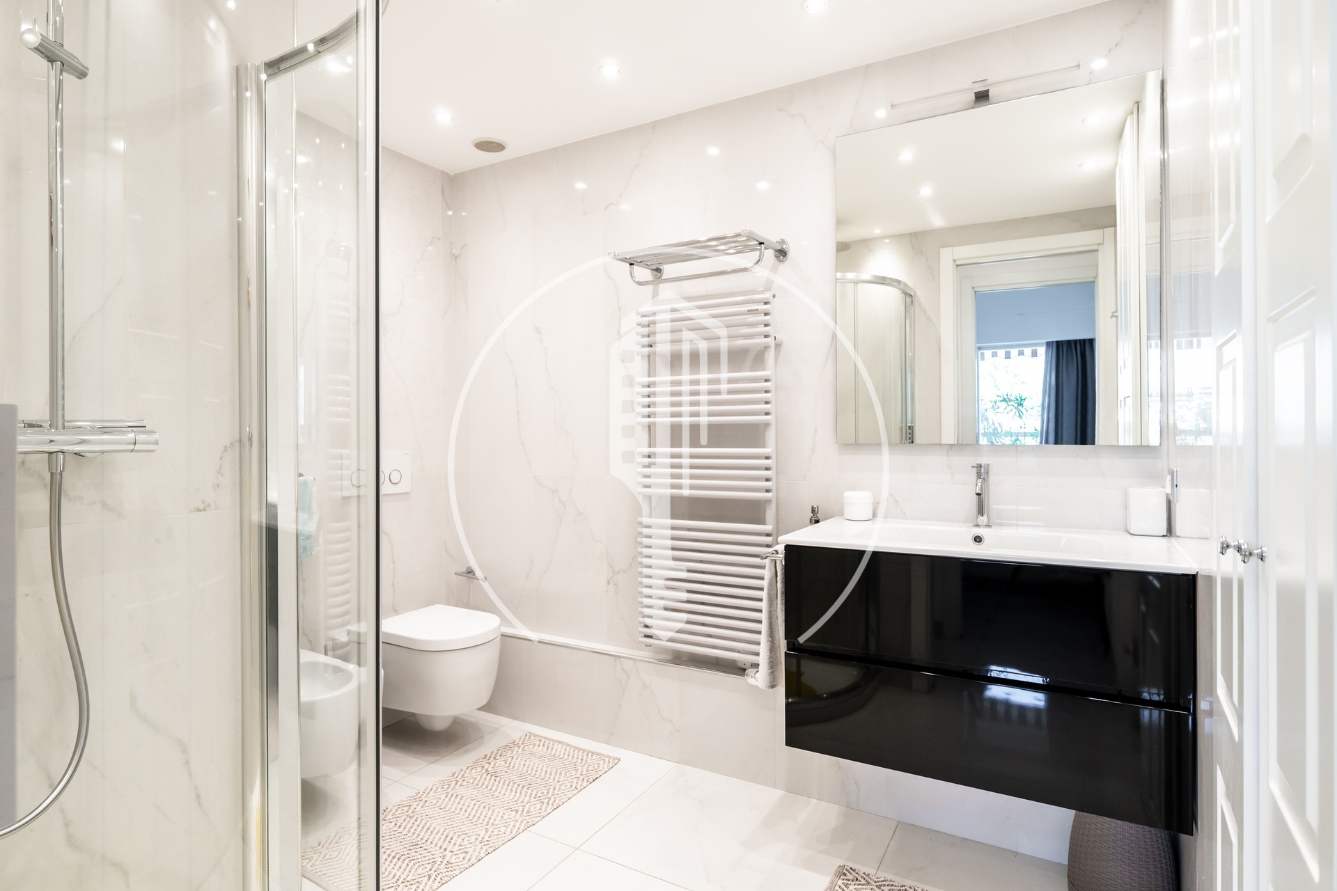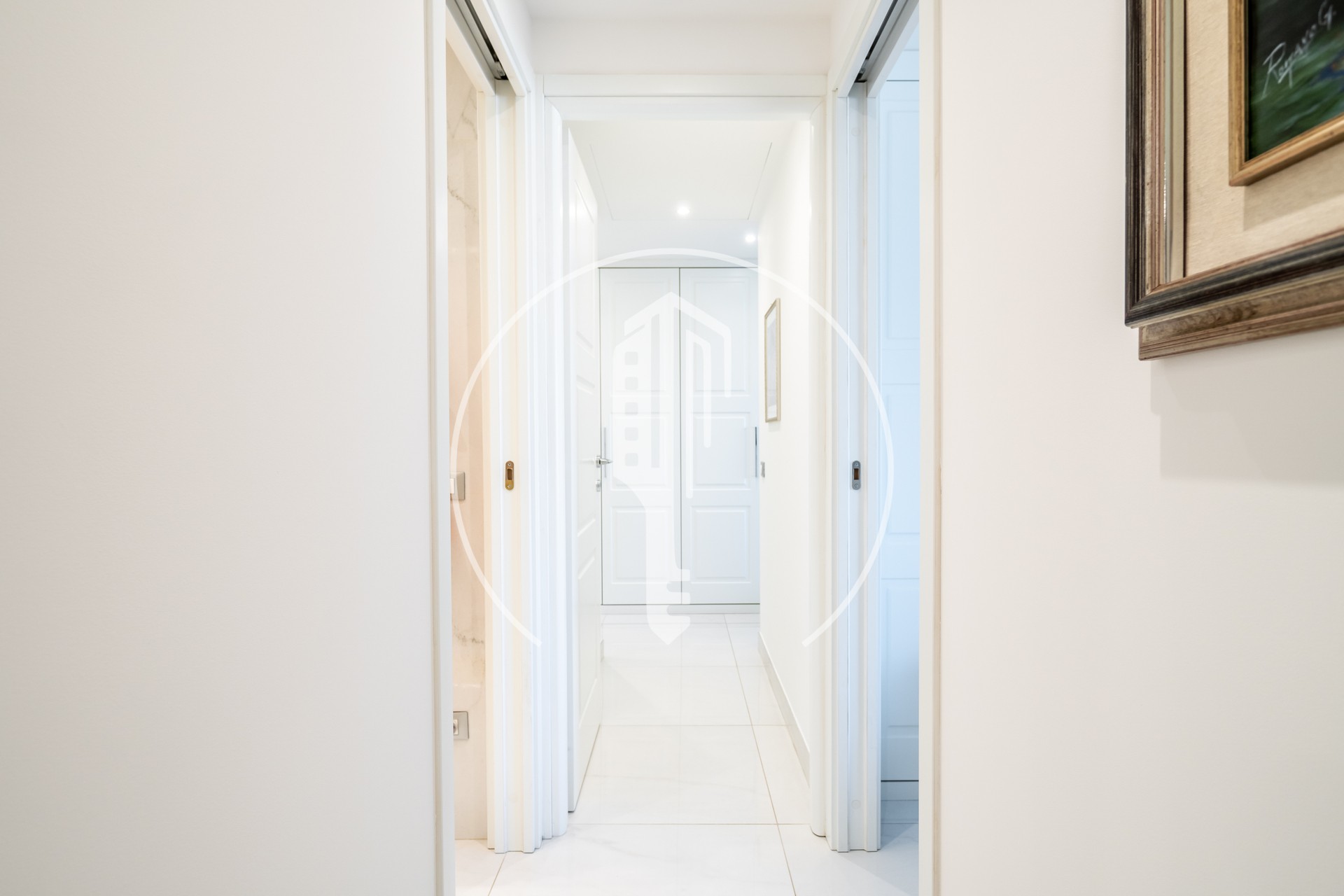 Il se compose d’un hall d’entrée, d’un vaste séjour avec cuisine américaine équipée, d’une chambre en suite avec dressing et salle de bains avec WC, ainsi que d’une seconde chambre avec dressing et salle de douche indépendante avec WC.
