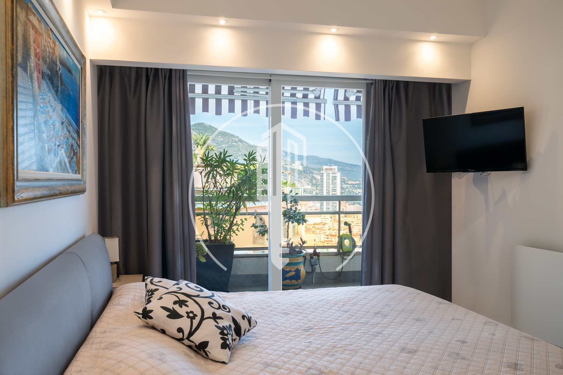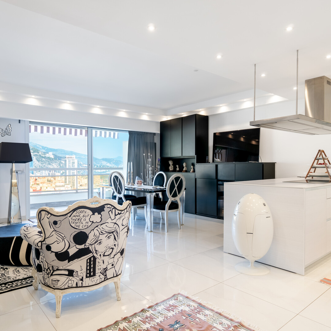 D’une surface habitable de 90,68 m² complétée par une terrasse de 27,70 m², cet appartement de 3 pièces, situé en étage élevé, bénéficie d’une vue panoramique remarquable sur la mer et le port de Monaco.