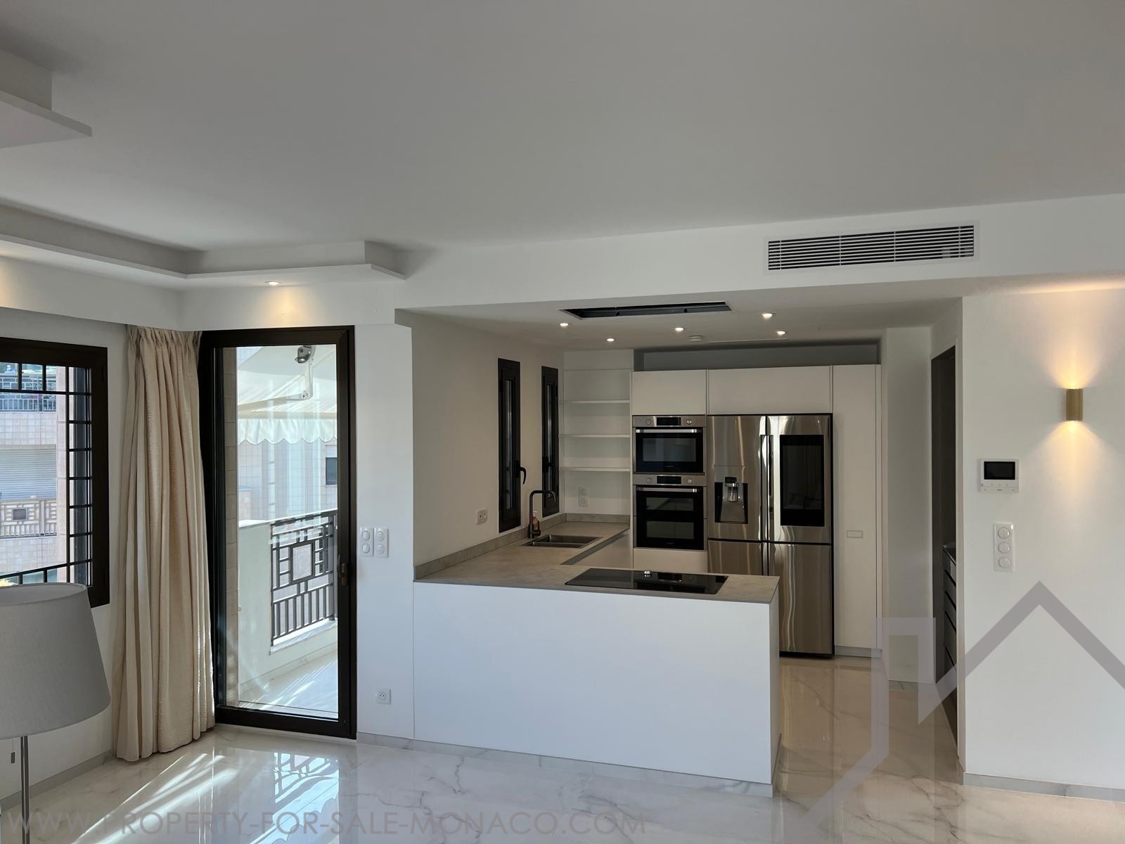 Dans un immeuble moderne du quartier de la Condamine, spacieux appartement de 4 pièces rénové avec terrasse.