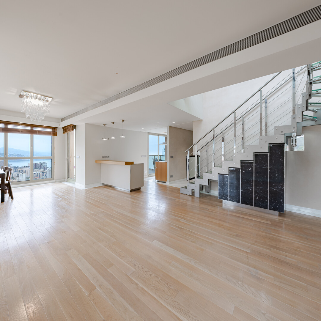 Situé aux deux derniers étages de la résidence Villa Les Pins, dans le quartier résidentiel et paisible du Moneghetti, ce duplex penthouse d'exception déploie 250 m² total. Depuis son toit-terrasse privé de 157 m², la vue panoramique embrasse toute la Principauté, le port, le Rocher et les côtes italiennes. Un panorama rare, un art de vivre unique, loin de l'agitation du centre tout en restant à deux pas de ses attraits