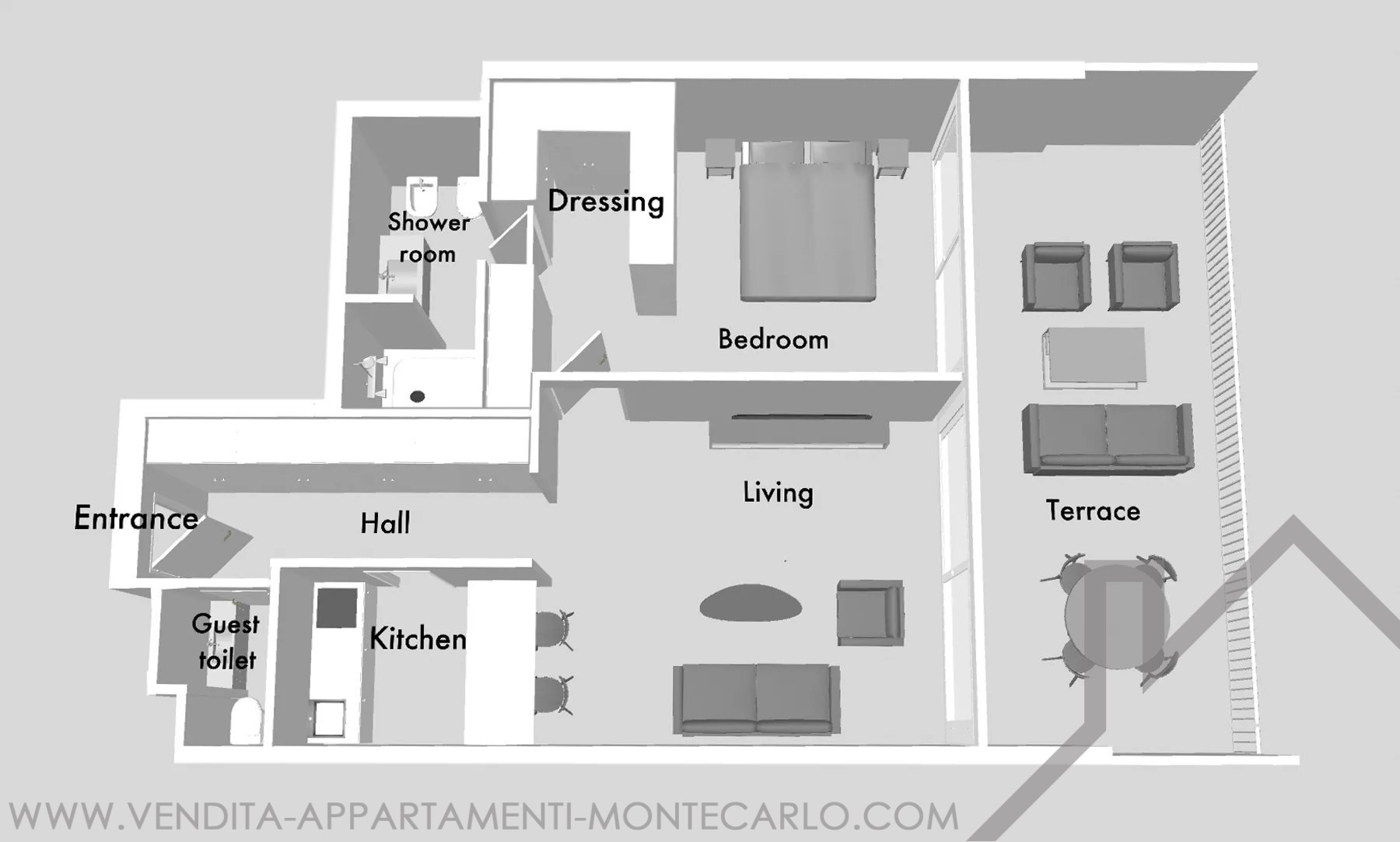 Ce luxueux appartement, vendu entièrement meublé, est composé comme suit :